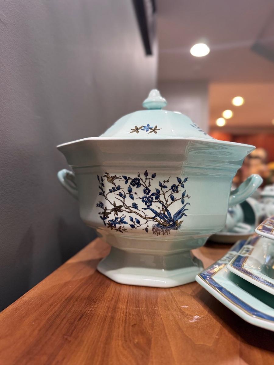 This is a large, coordinated dinner service that will stand out on any table — or make a wonderful collector’s addition.