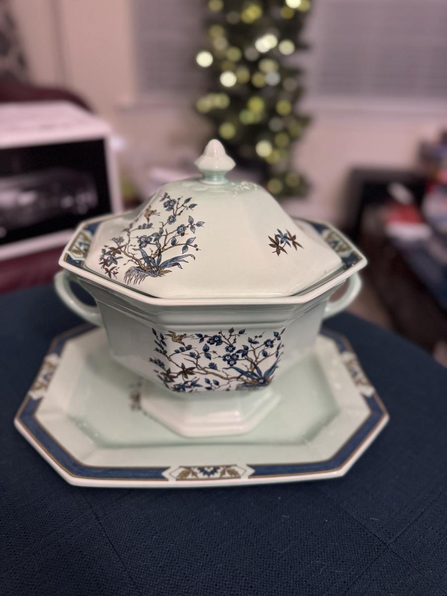Vintage Ming Toi Porcelain Dinnerware Set – Blue & Gold Floral – Large Service with Tureen & Platters