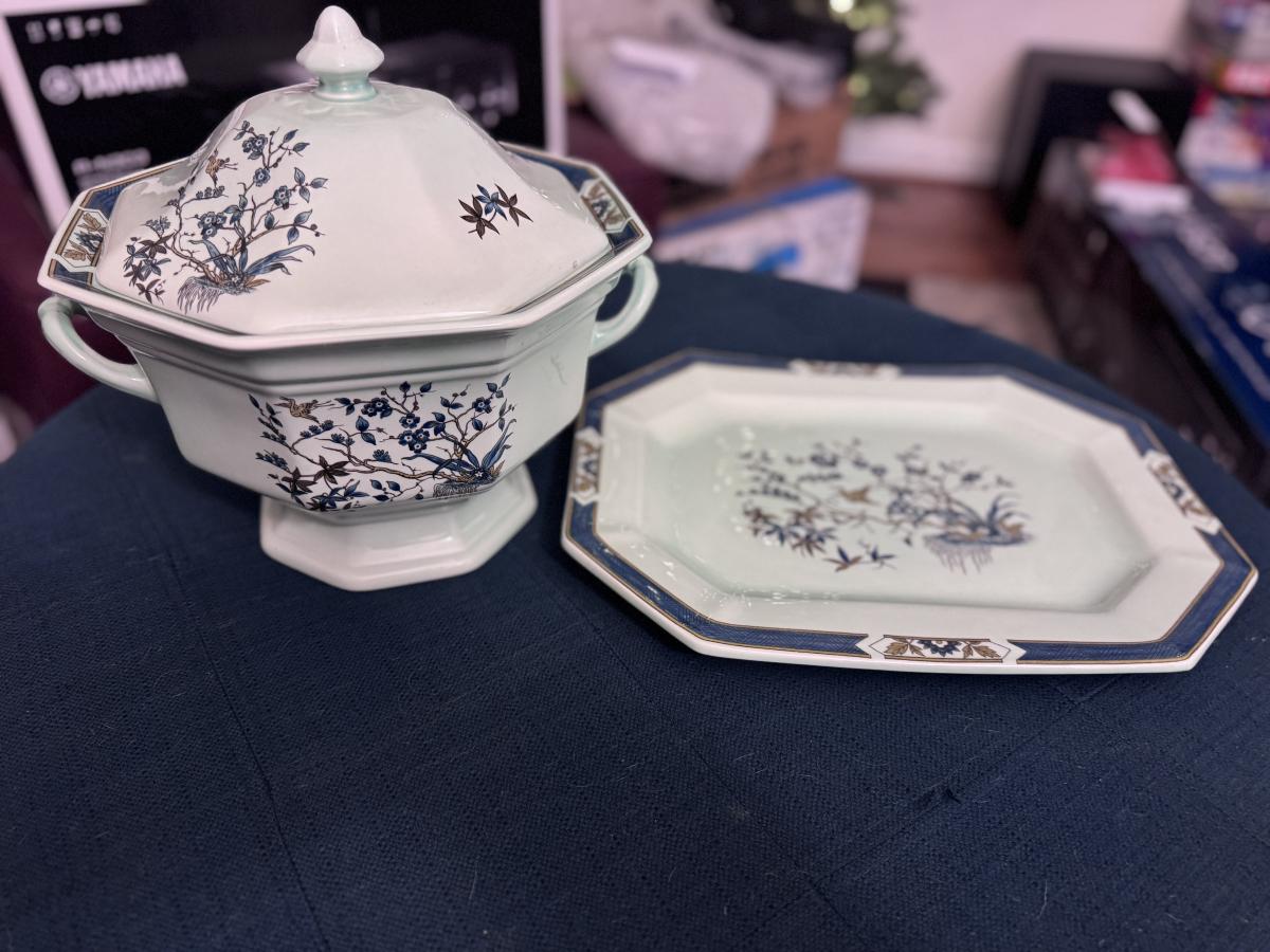 Vintage Ming Toi Porcelain Dinnerware Set – Blue & Gold Floral – Large Service with Tureen & Platters