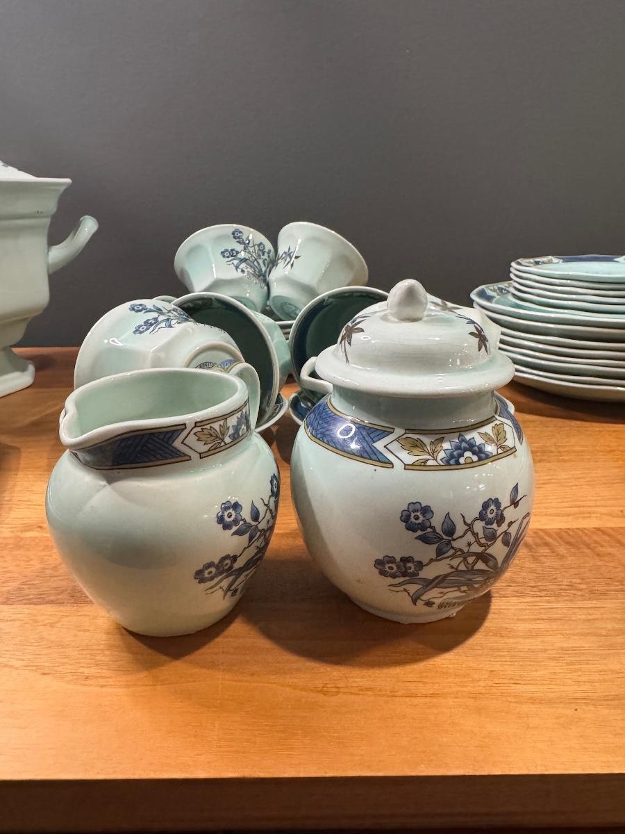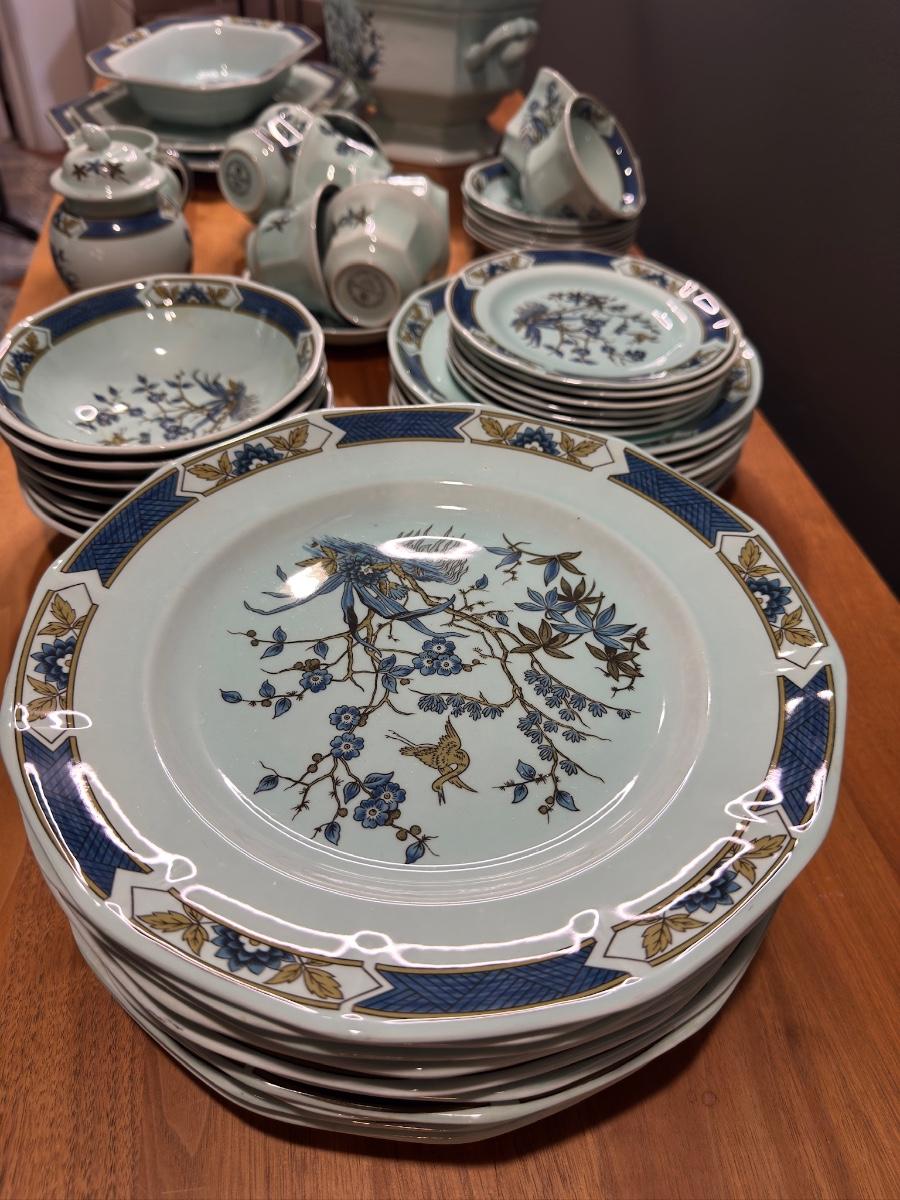 This is a large, coordinated dinner service that will stand out on any table — or make a wonderful collector’s addition.