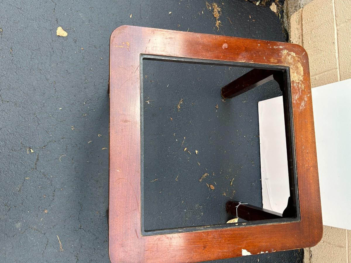 Disclosures: This is a beautiful wooden end table in need of restoration and a glass top, hence the reduced price. (Please see the pictures for details.)
