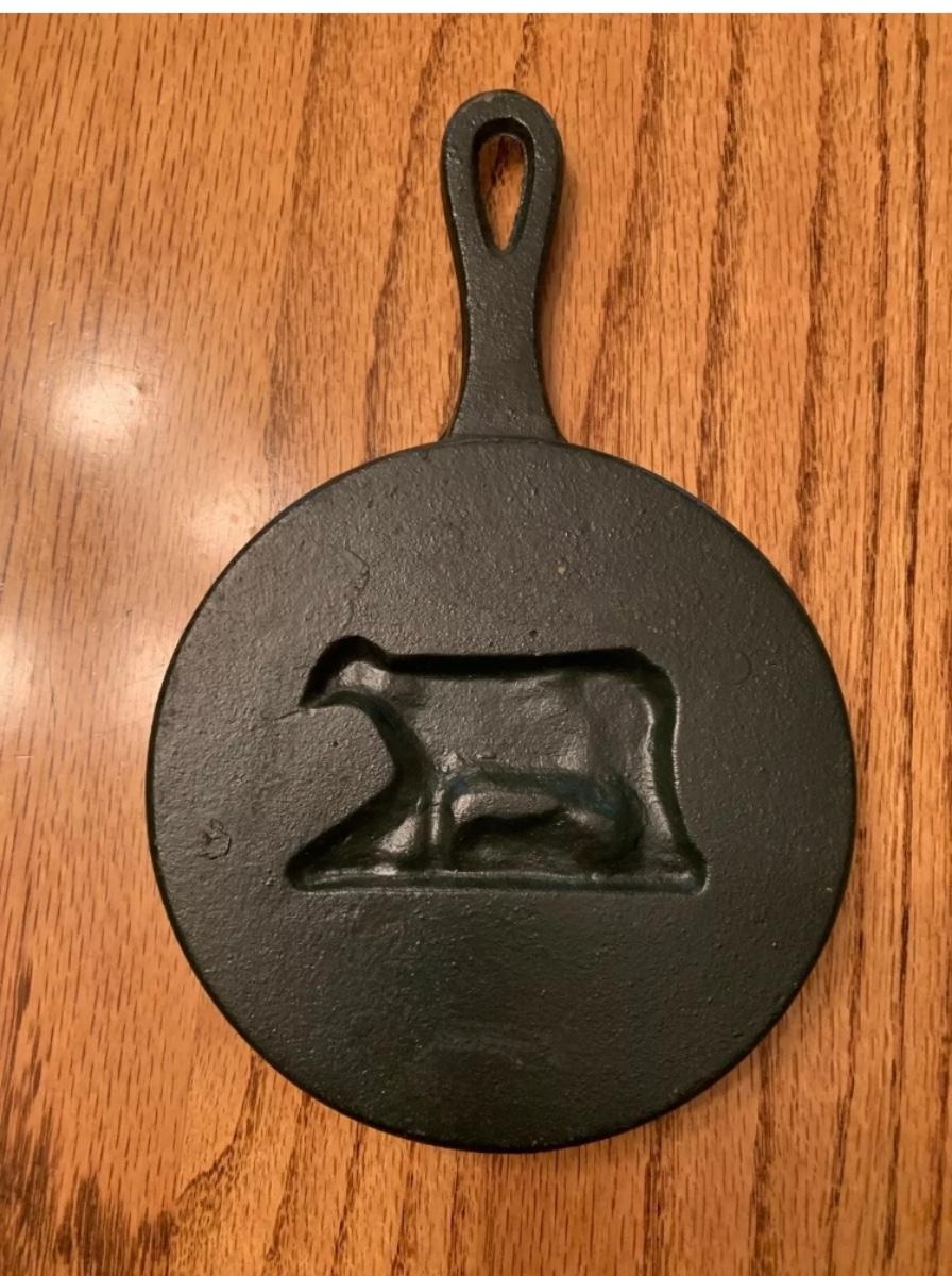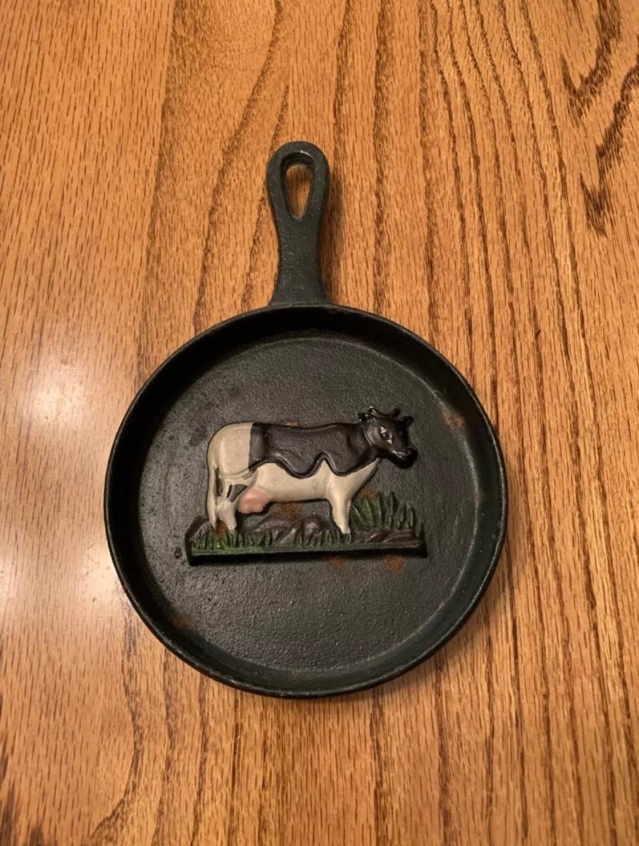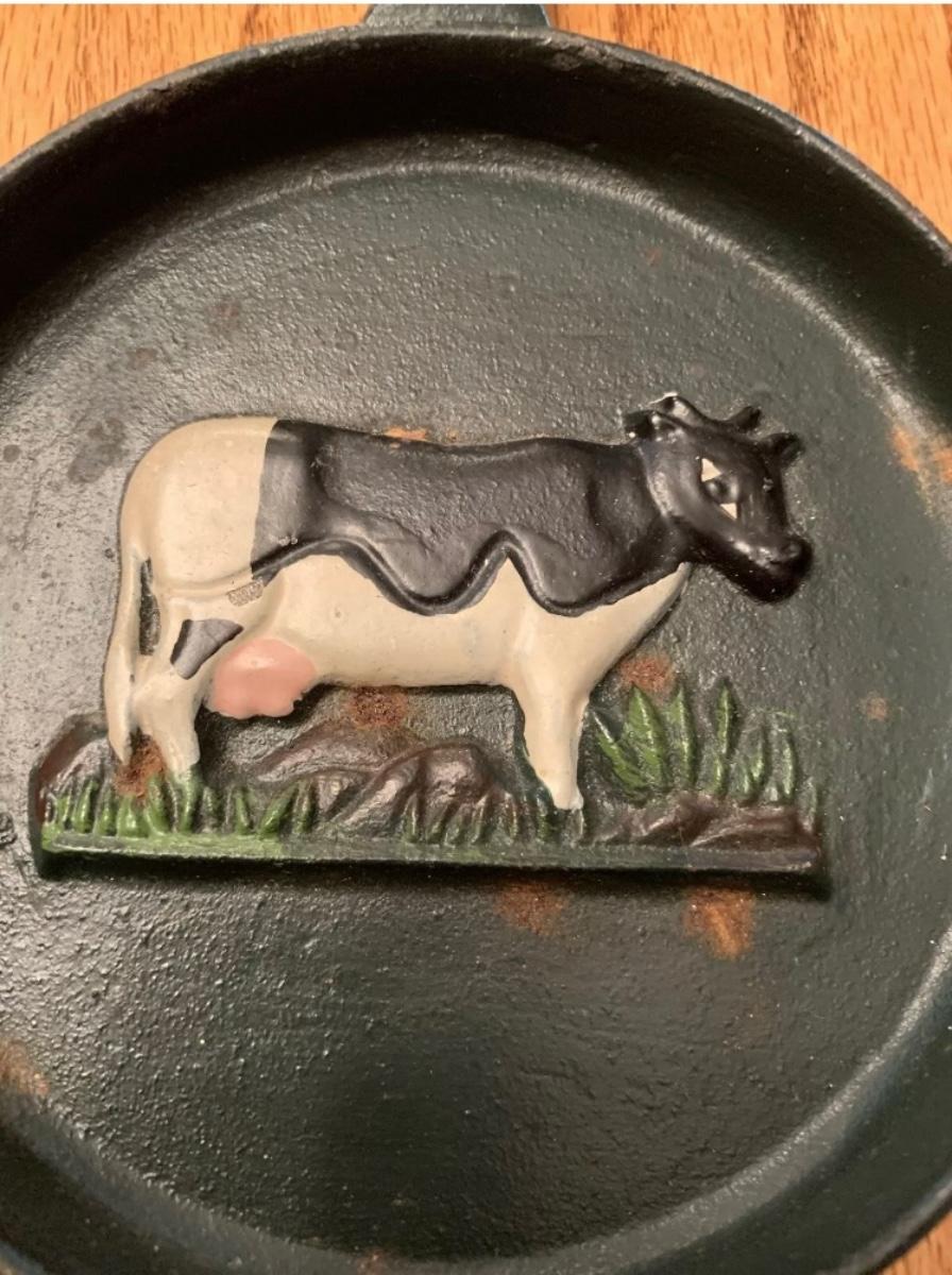 Vintage cast-iron raised cow design mini wall skillet 4 3/4 x 7 1/2 T