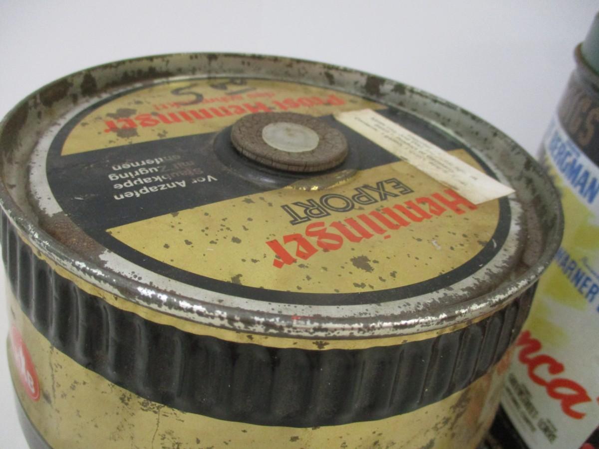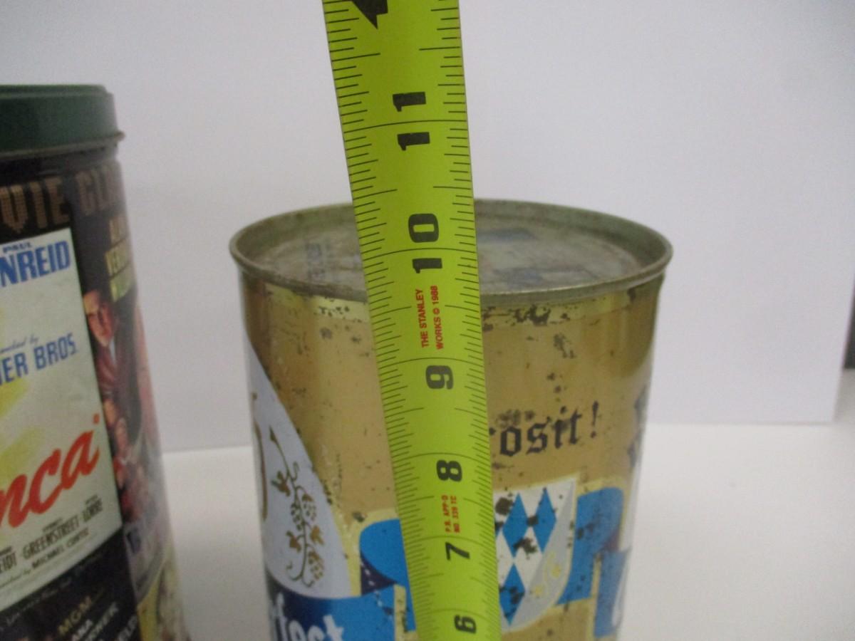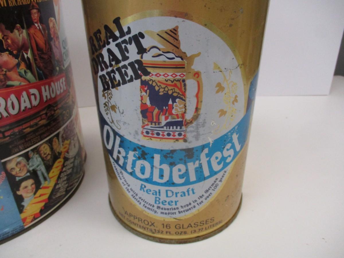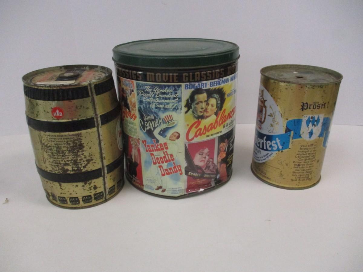 Vintage Miniature Beer Keg (empty) Henninger Export Can - Movie Classics Popcorn Tin Casablanca Tarzan Zorro Houston Foods Co. & Vintage Oktoberfest Real Draft Beer Mini Keg 132 Oz Empty