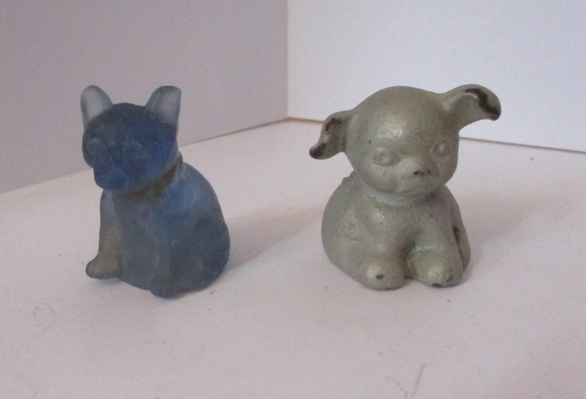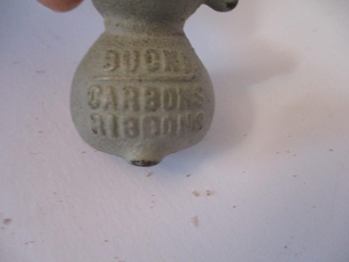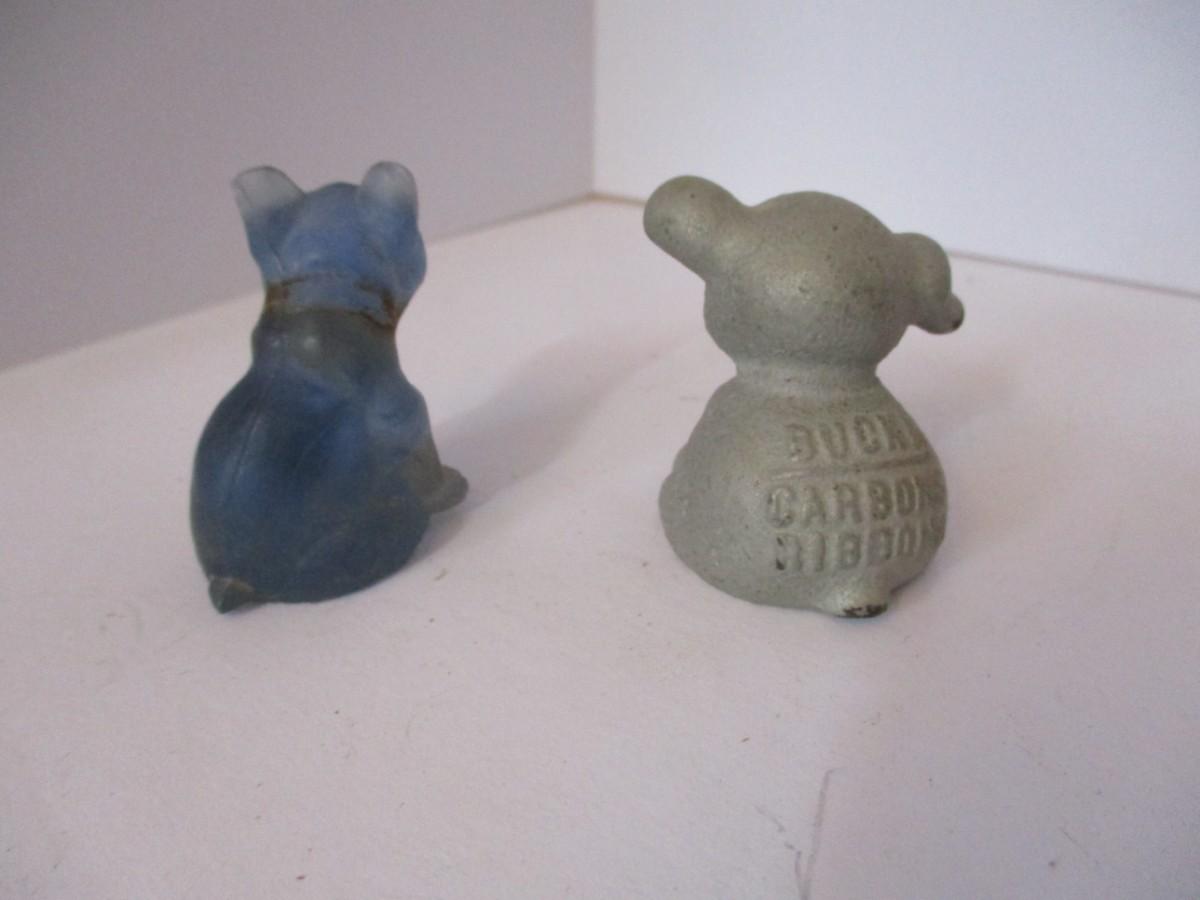 Vintage Miniature Bull Dog Bucki Carbons Ribbons & Blue Dog