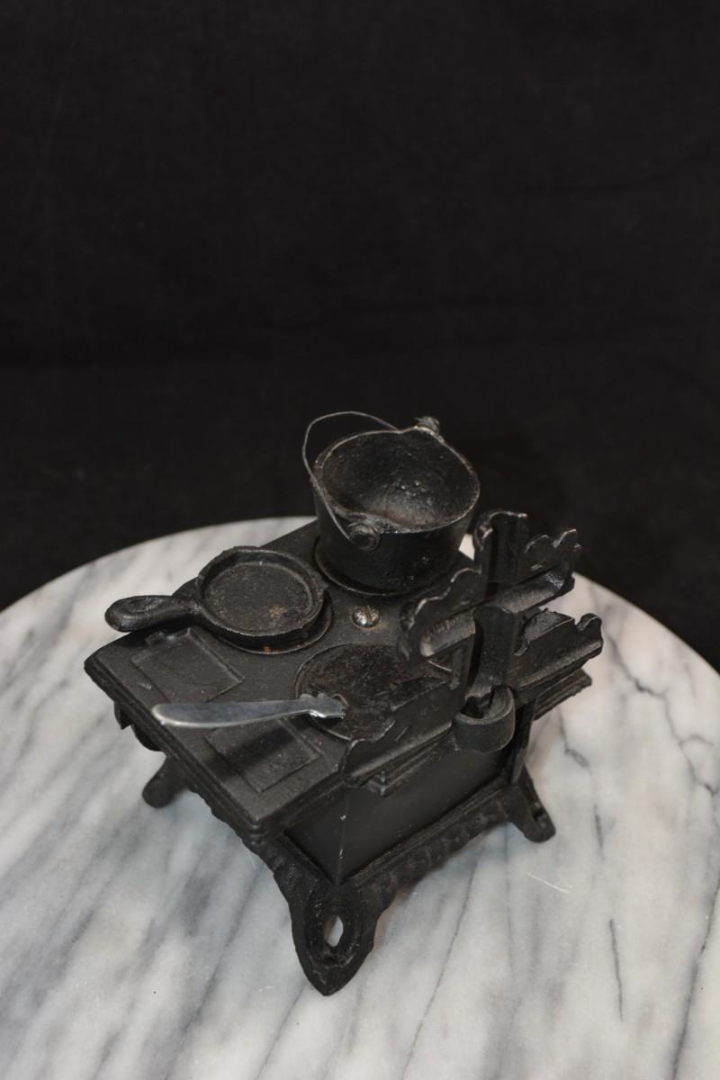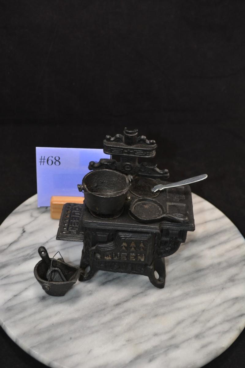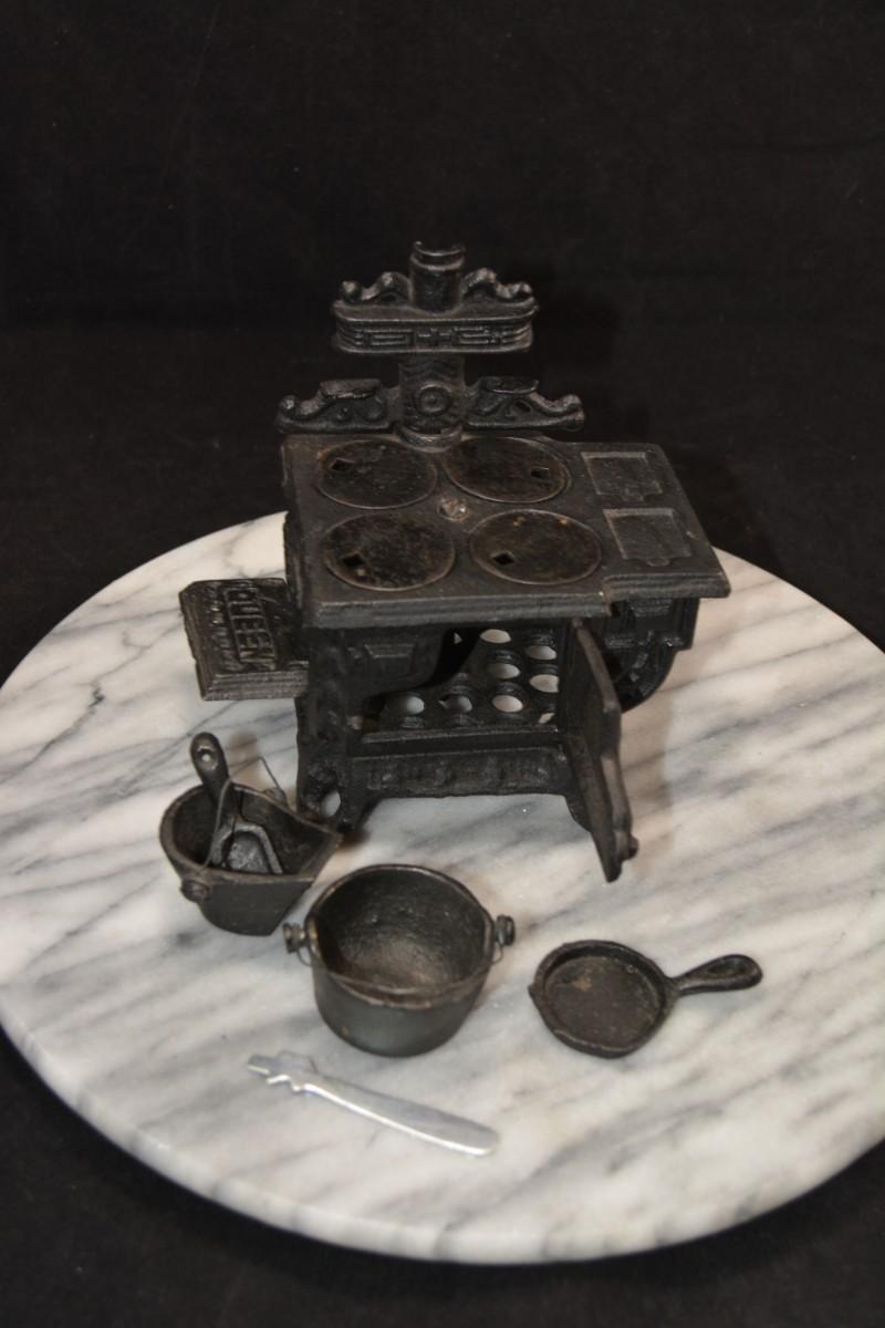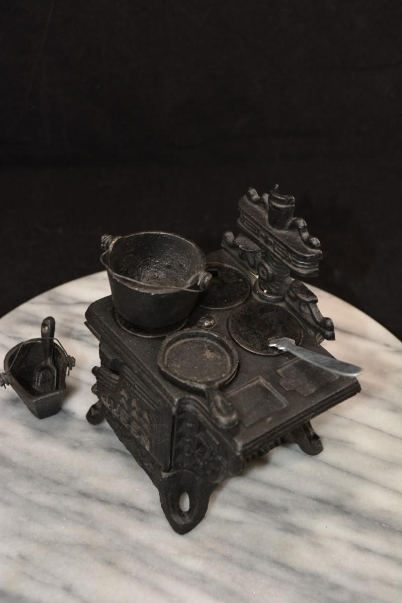 Vintage Miniature Cast Iron ‘Queen’ Stove w/ Accessories 5.5”x5.5”