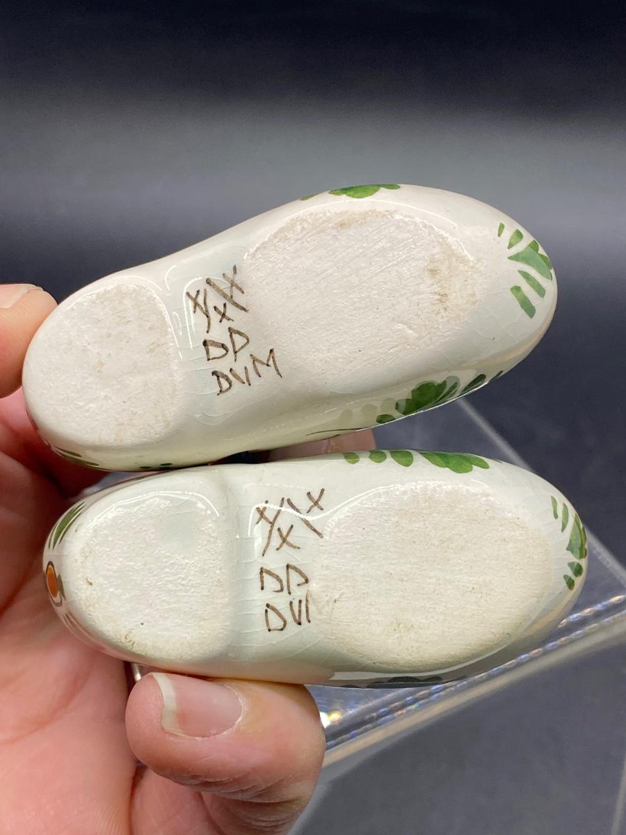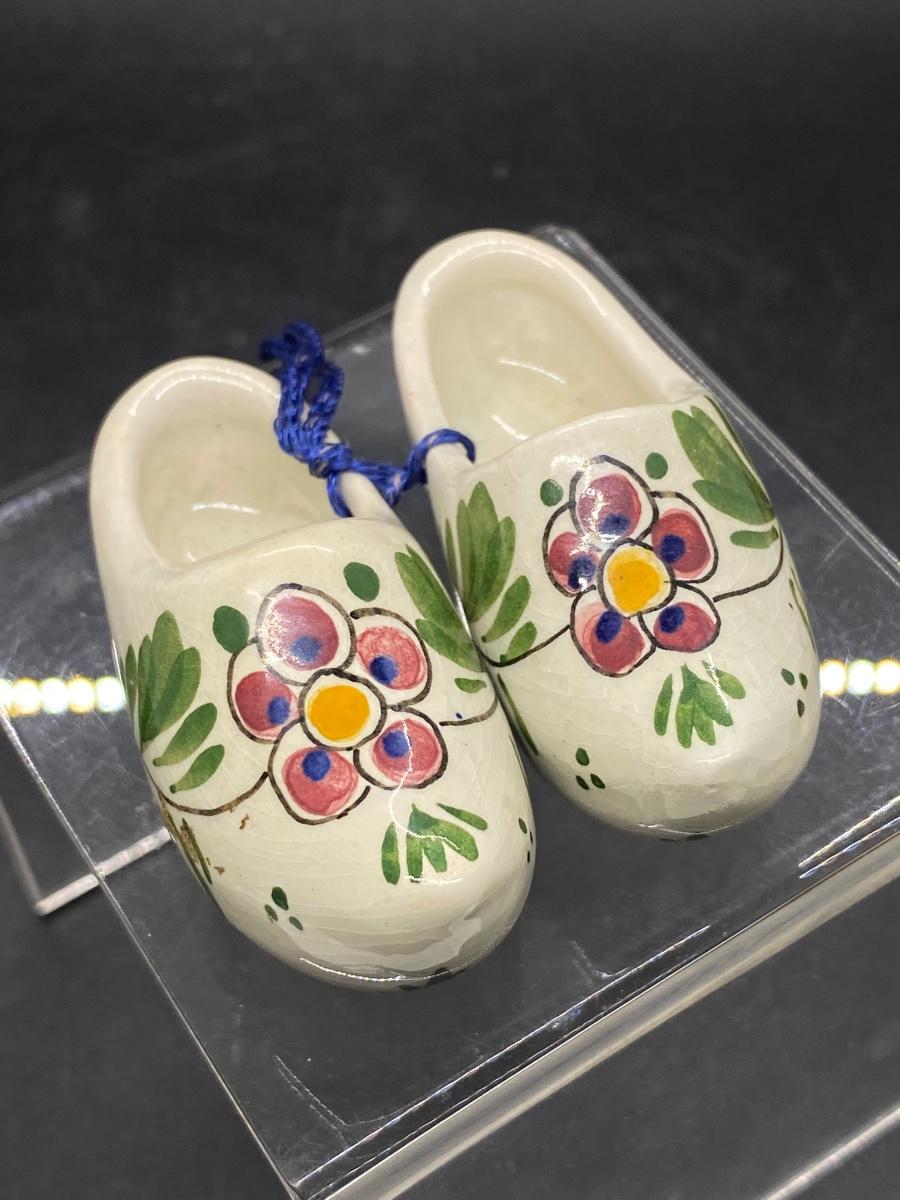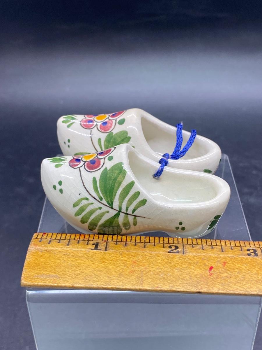 Vintage Miniature Ceramic Painted Wood Shoes Figurine