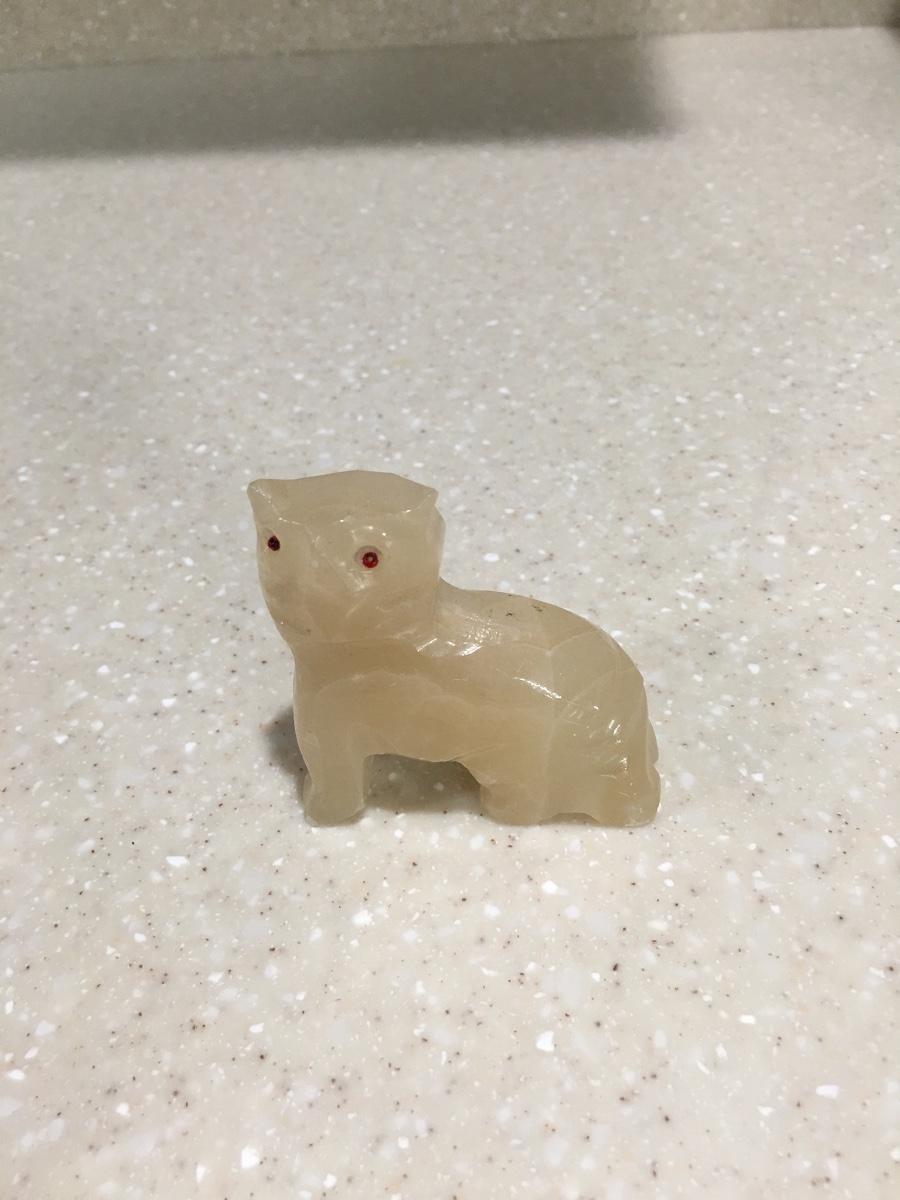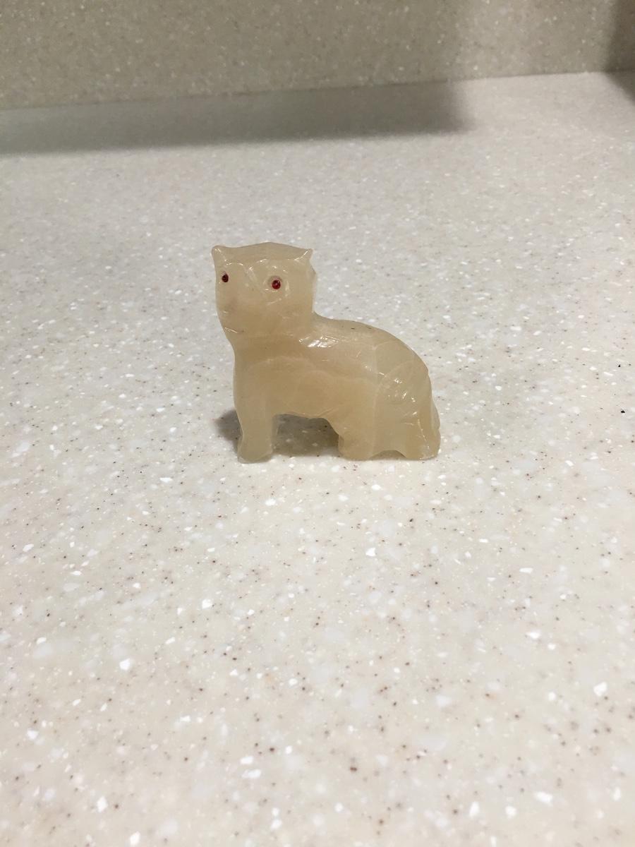 Vintage hand carved onyx stone miniature cat figurine in good condition. Wonderful addition to any cat mini/stone/ cat collection. 2” long and 2 1/2” tall.