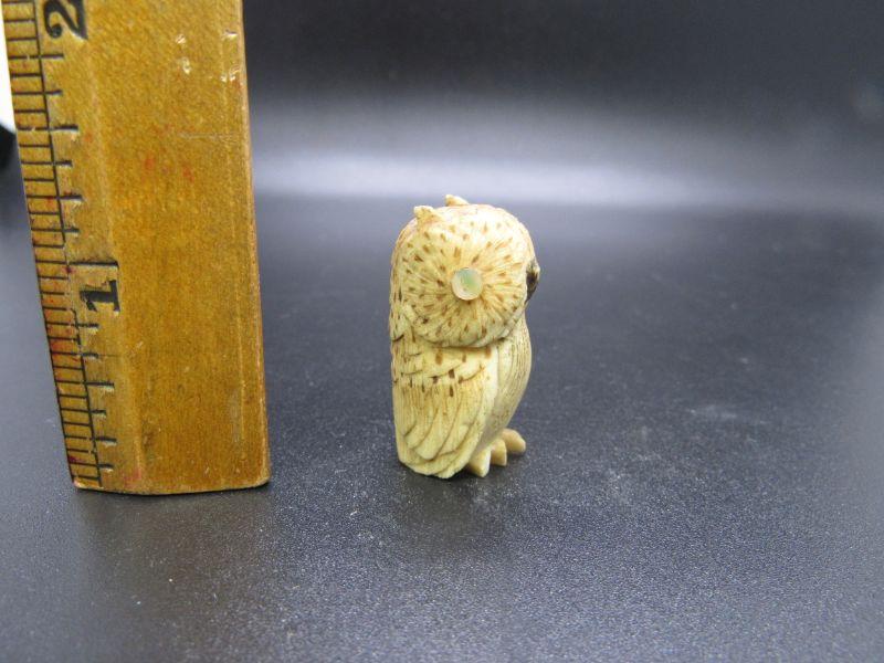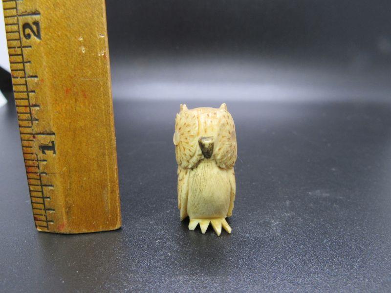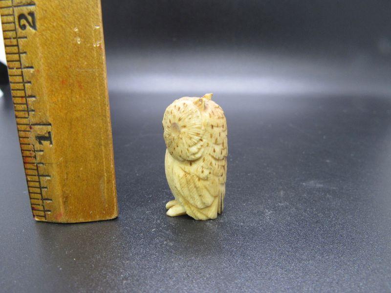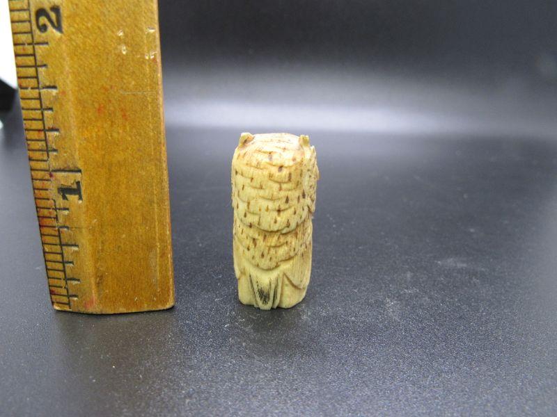 Vintage miniature owl figurine. Looks hand carved. Just over 1" size.