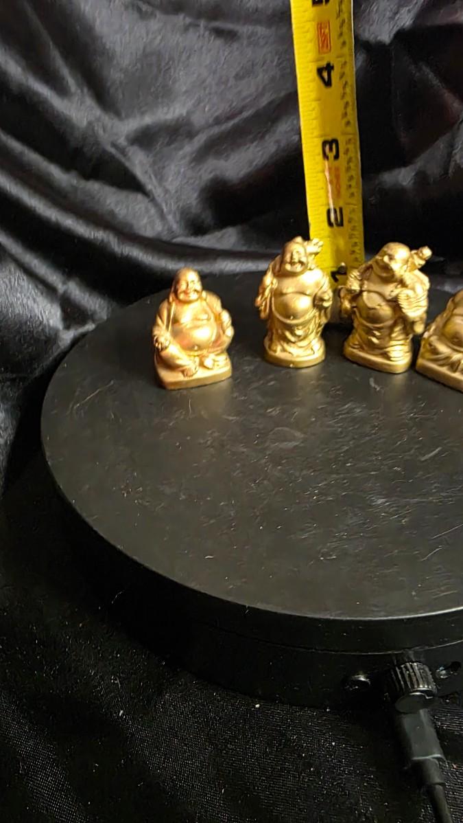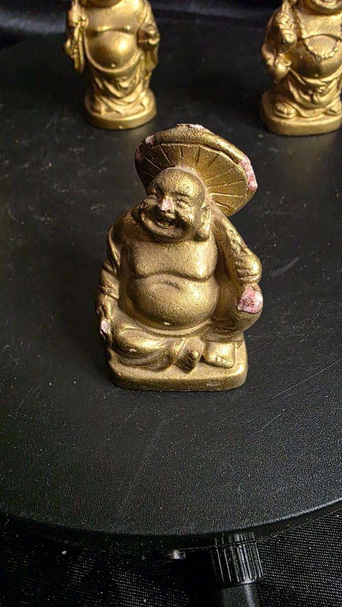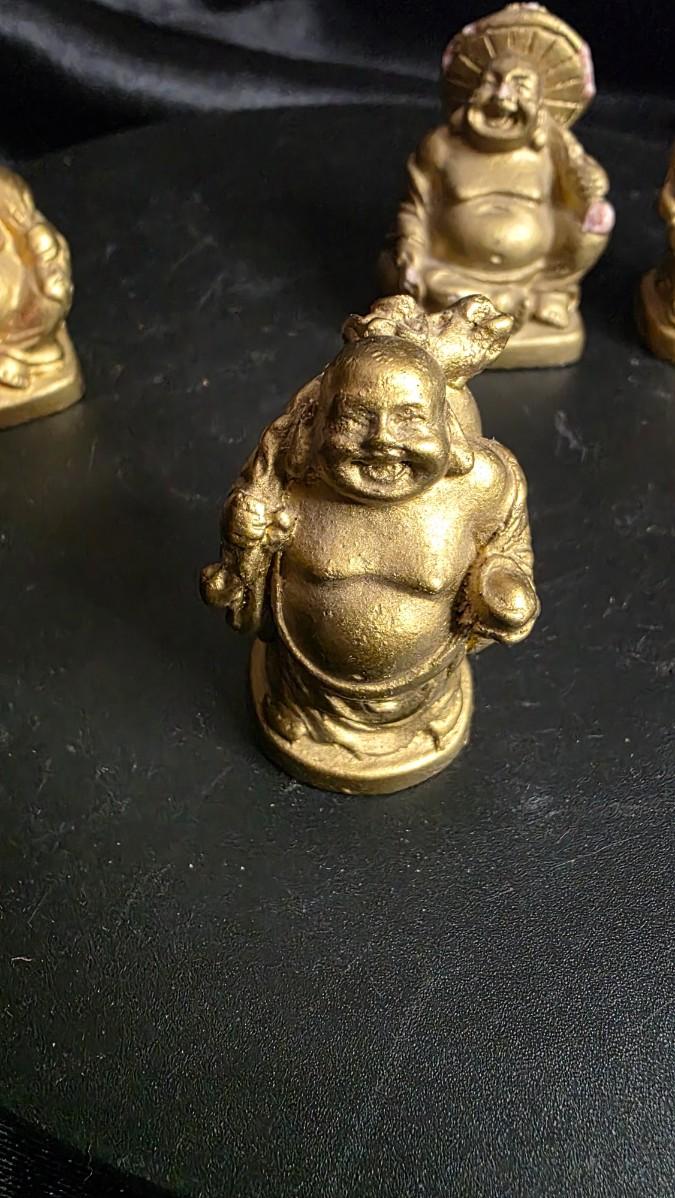 Vintage Miniature Laughing Buddha Figurine Set of 4 - Gold Resin Prosperity Collection