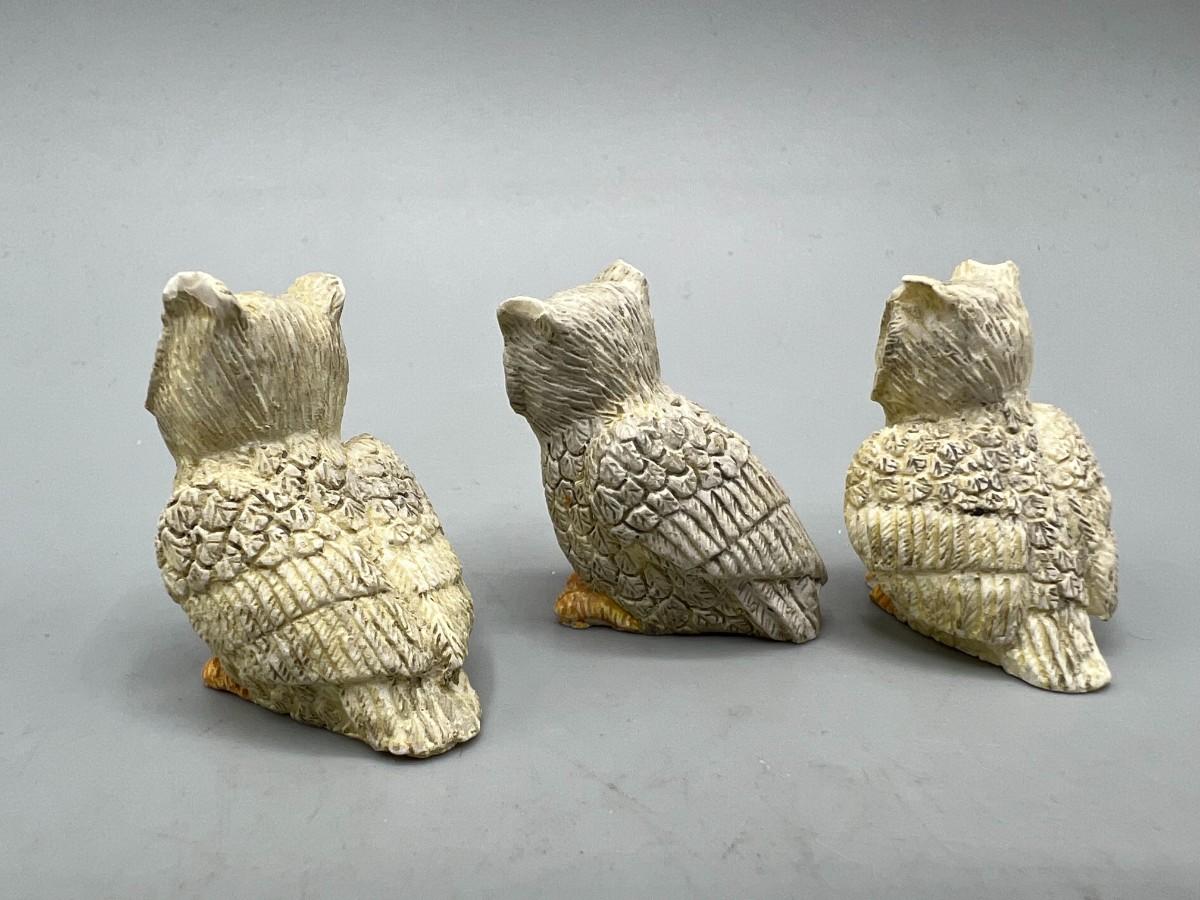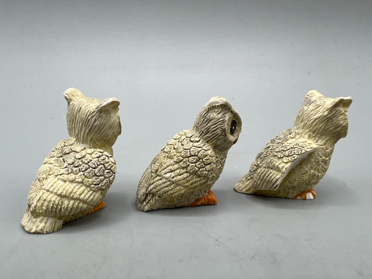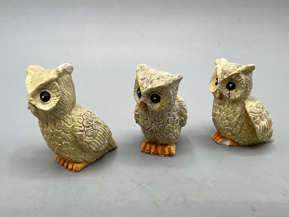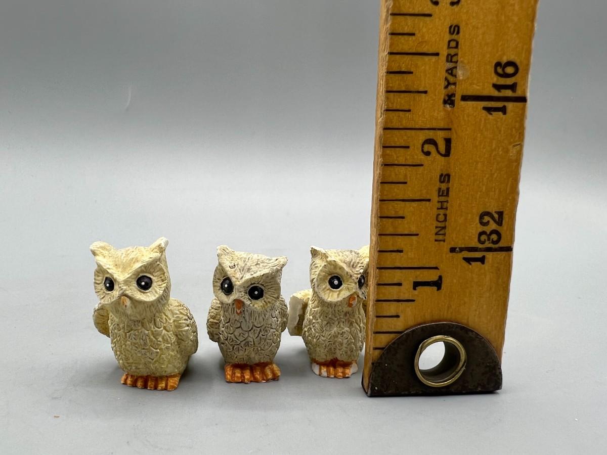 Vintage Miniature Owl Bird Figurines. About 1" size. Some signs of age and wear but still display nicely.