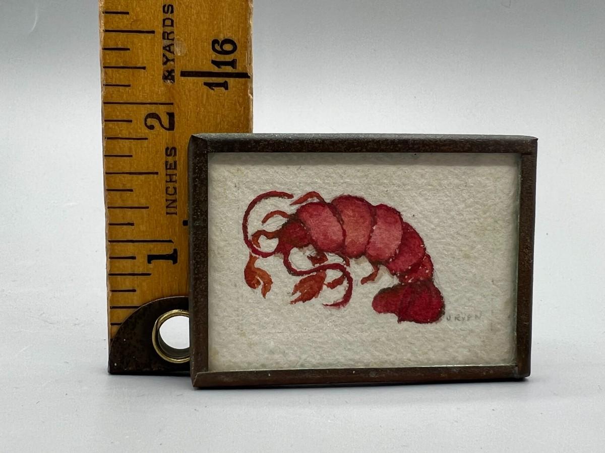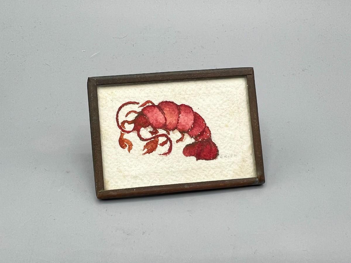 Vintage miniature size painting of a shrimp. Small only about 2" size.