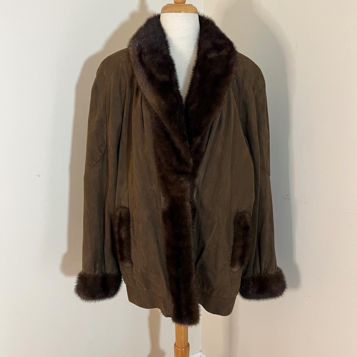 Vintage Mink Trimmed Suede Jacket Coat