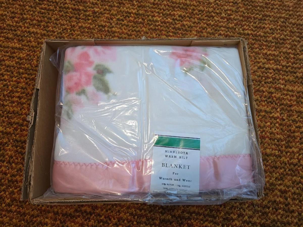 Vintage Minnesota Warm Bilt floral blanket, new old stock in its original packaging. 72" x 90"