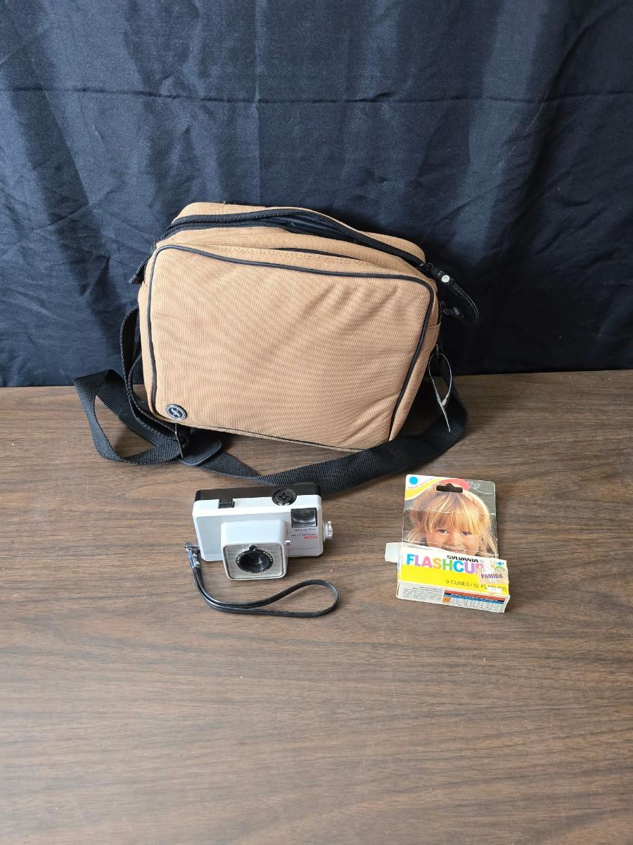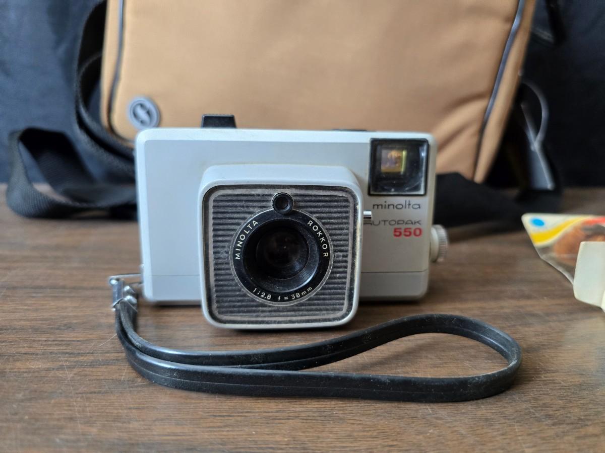 Vintage Minolta autopak 550 camera with a nice camera case and extras!