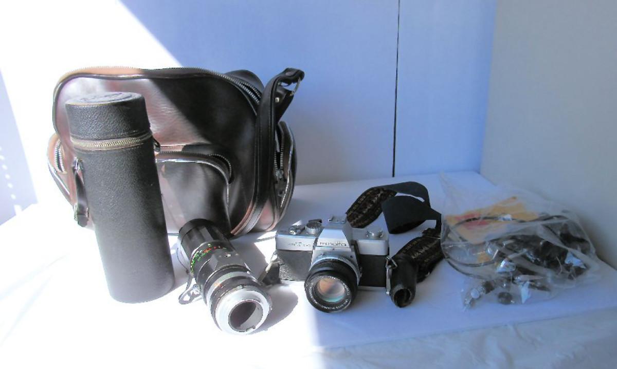 Vintage Minolta Camera with Accessories and Case and Extra Lense