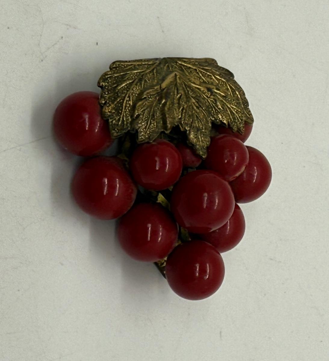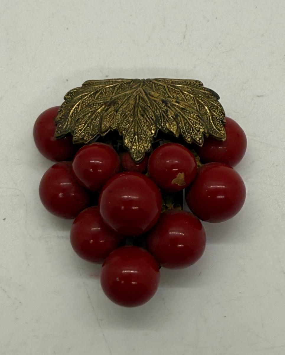Vintage Miriam Haskell Era Unsigned Red Grape Cluster Scarf Dress Fur Coat Clip