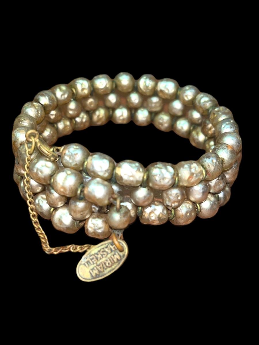 Vintage Miriam Haskell Pearl Wrap Bracelet w/Chain