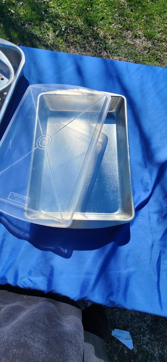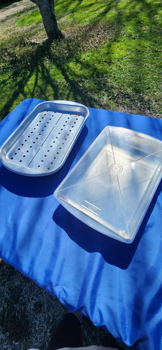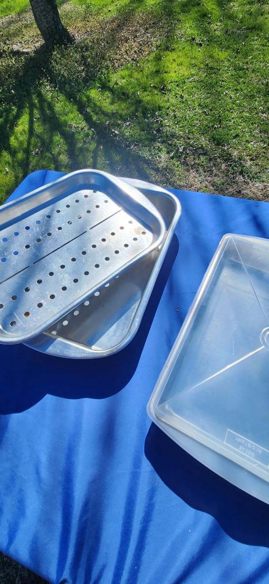 Vintage Mirro Aluminum Roasting Rack, 2 Pans, And 1 Plastic Lid