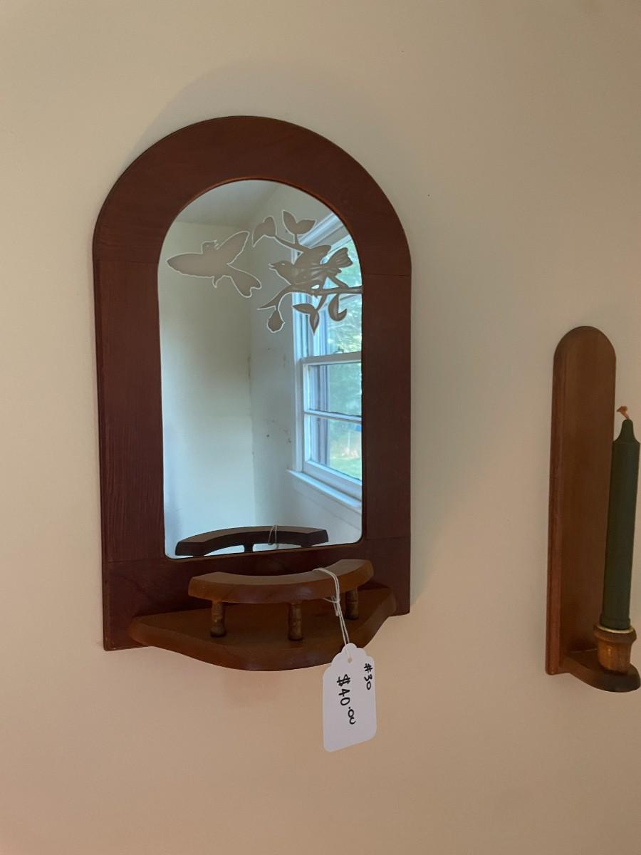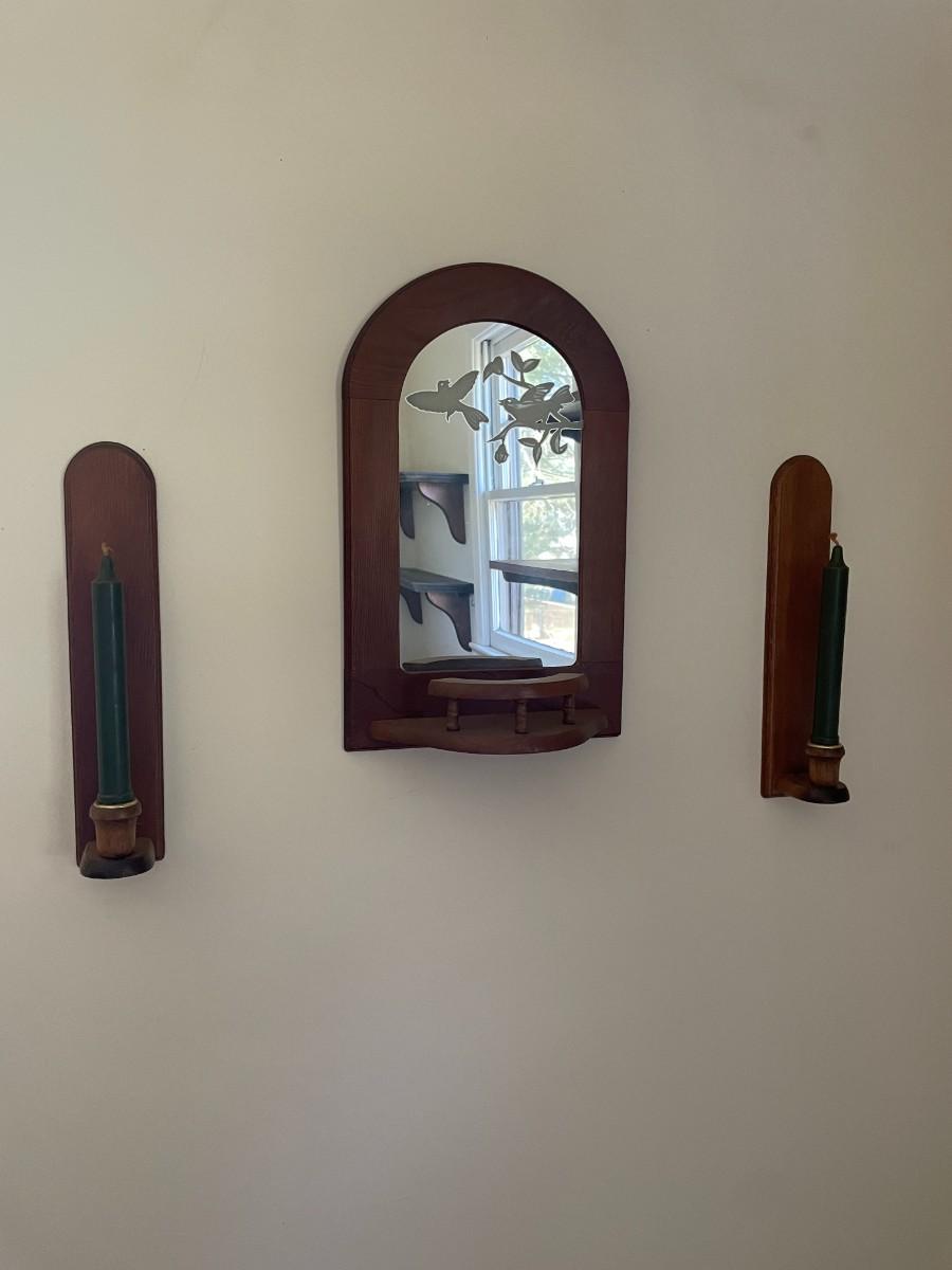 Vintage Mirror Shelf Wall Hanging and Set of Candle Holders Sconces