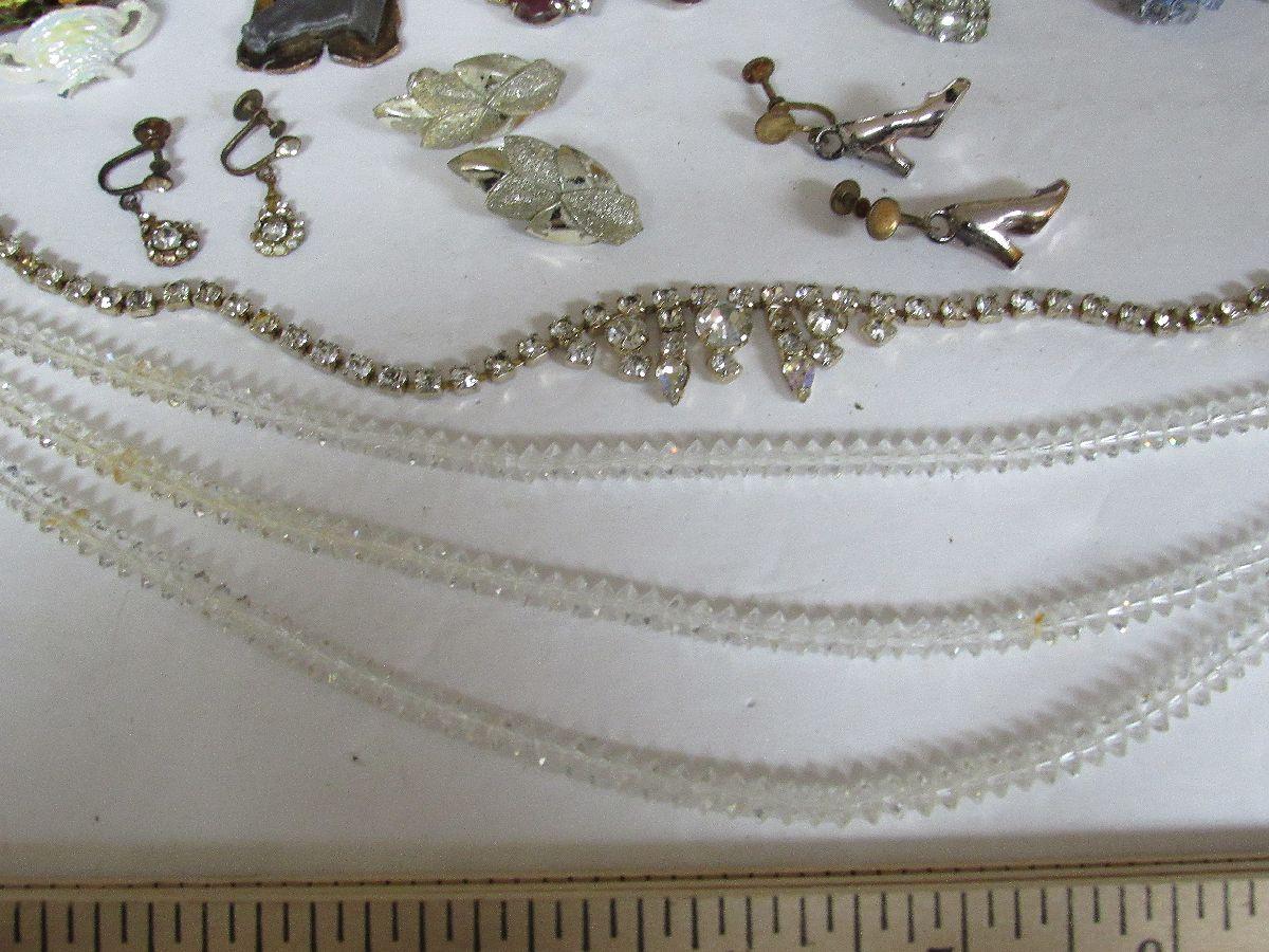 Most need cleaning. Some of the stones are dull, the black coral needs to be polished, very dull. The rhinestone necklace has some staining. The glass necklace also has some staining, needs good cleaning.
