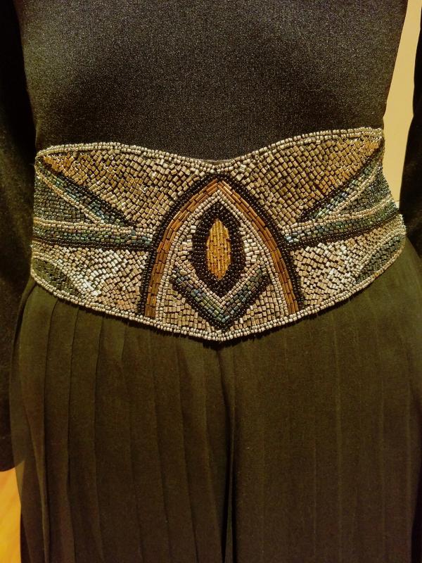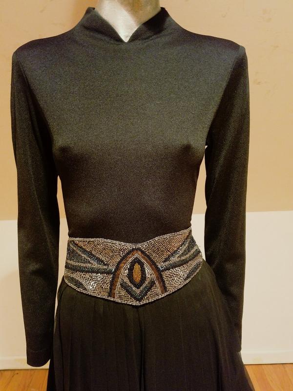 Vintage Miss Elliette California 1950's Chiffon pleated maxi gown beaded belt