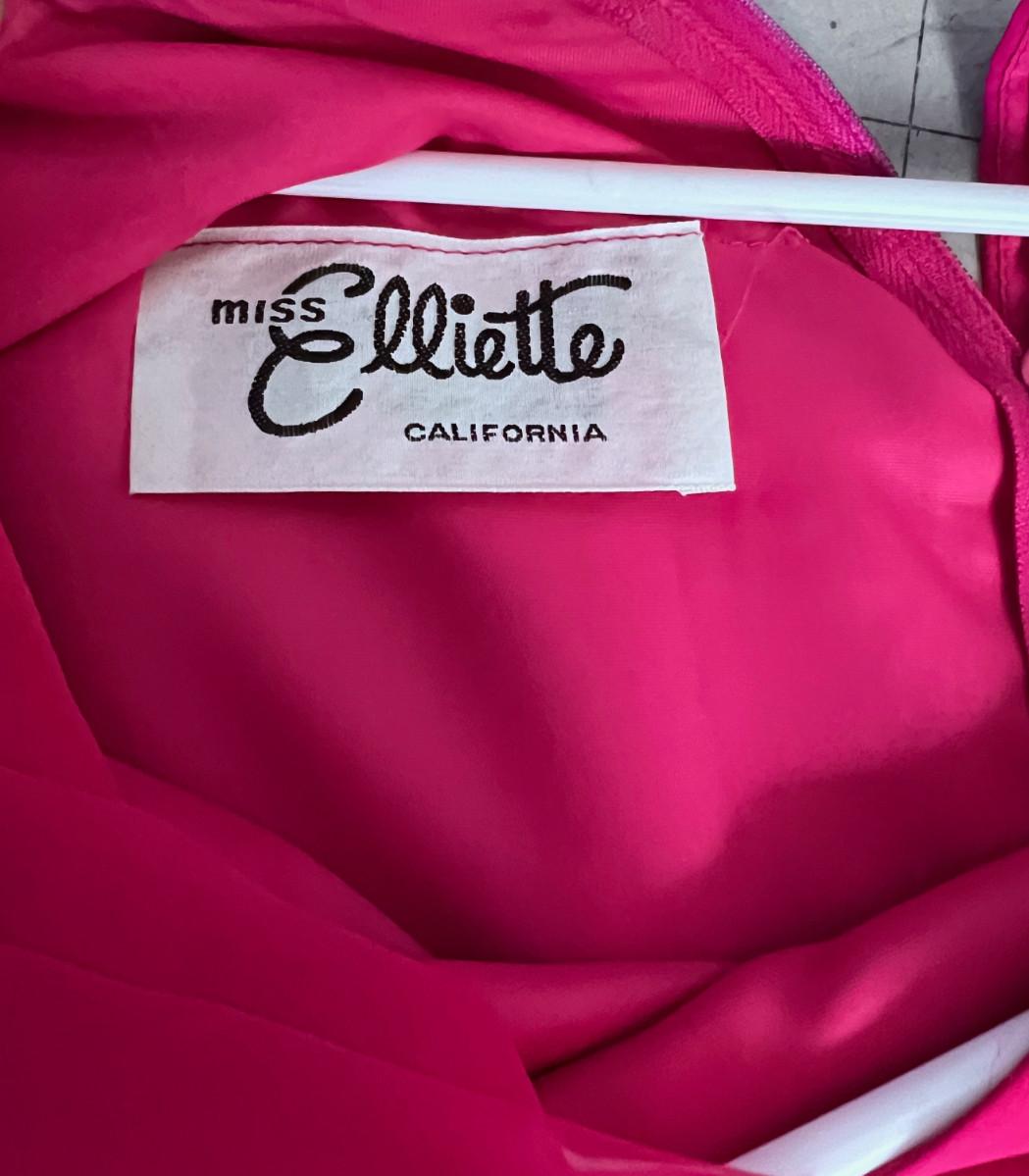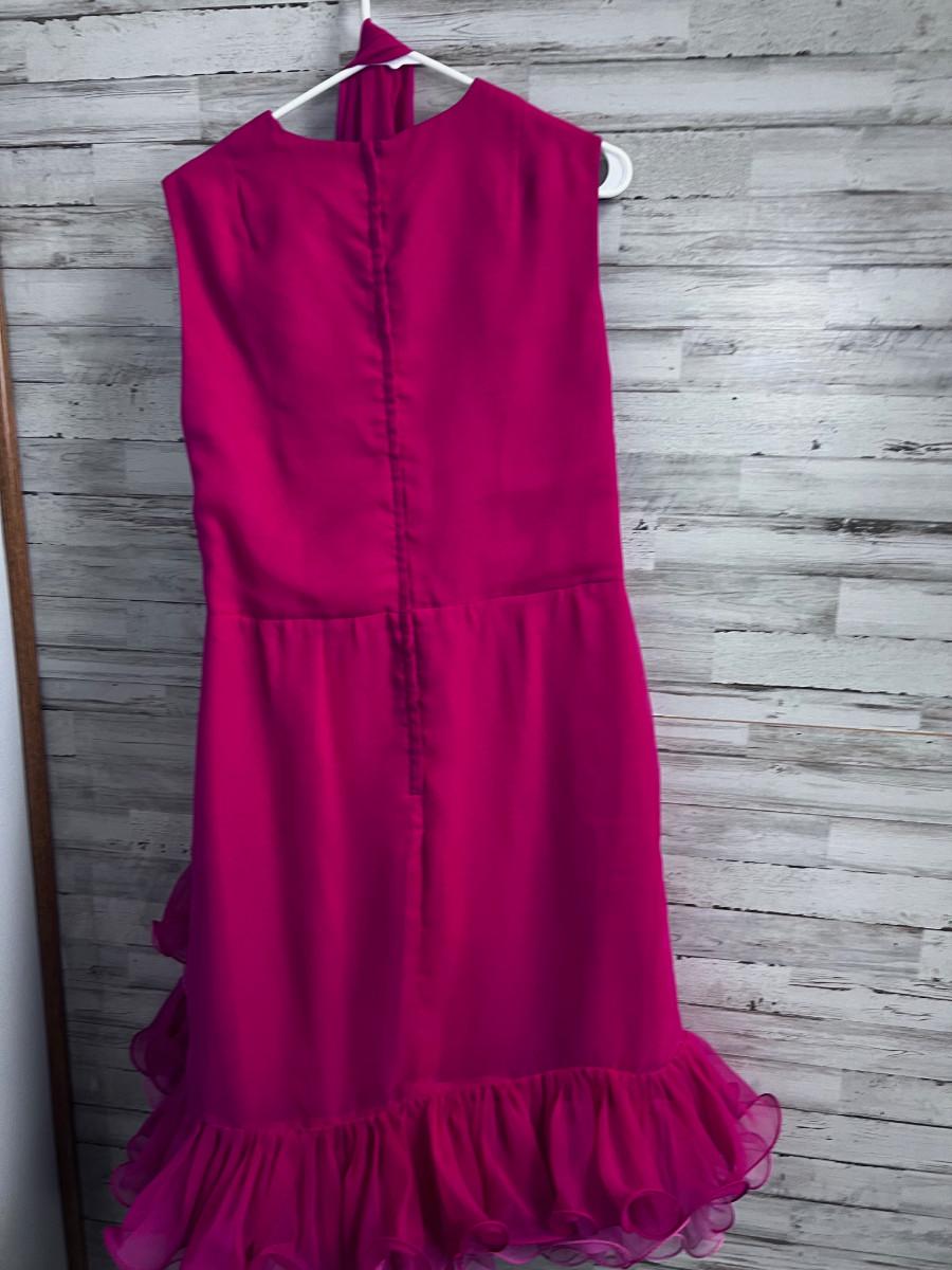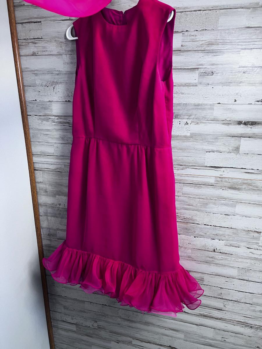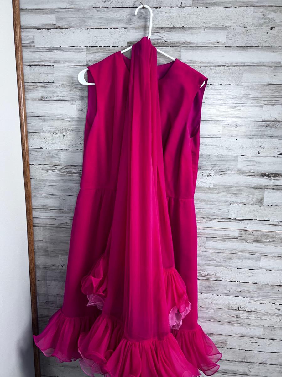 VINTAGE! MISS ELLIETTE Fuchsia Pink Chiffon Party DRESS with Sash