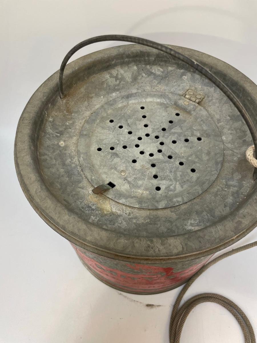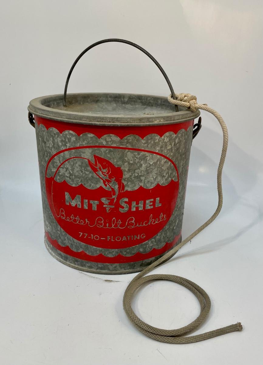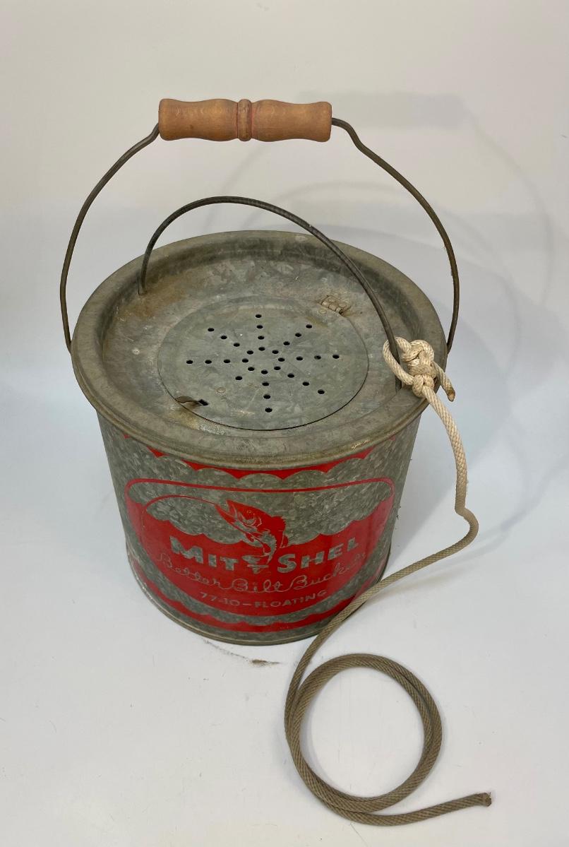 Vintage Mit-Shel Better Bilt 77-10 floating galvanized metal minnow bait bucket