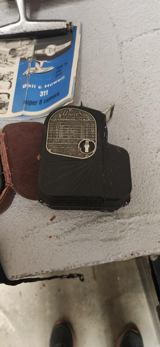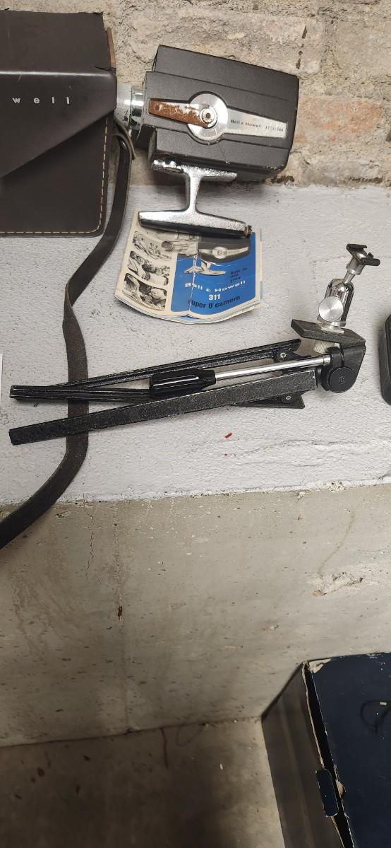 Bell and Howell 311 in case...camera is in thought shape. Old tripod, Univex and exposure meter