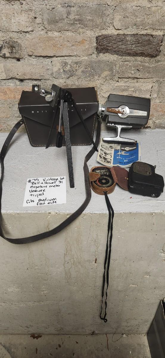 Vintage mix lot - tripod, exposure meter, Bell and Howell 311