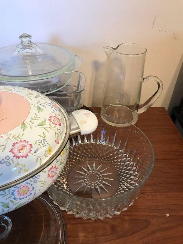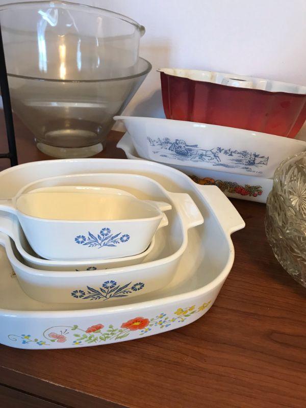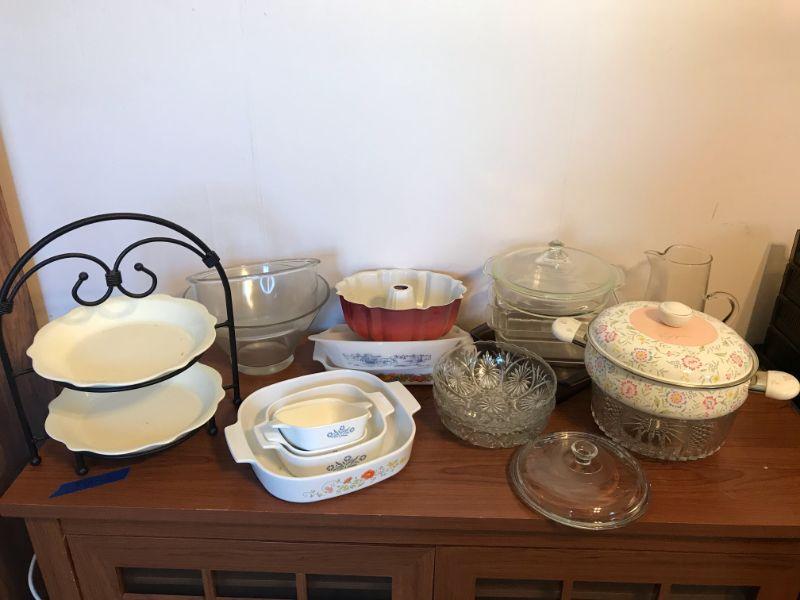 Vintage Mix Variety of Kitchen Items Baking Pans, Pitcher, Crystal Bowls, Corningware, etc (110)