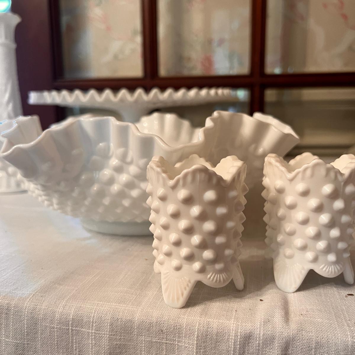 Vintage MCM Mixed Lot Milk Glass Hobnail