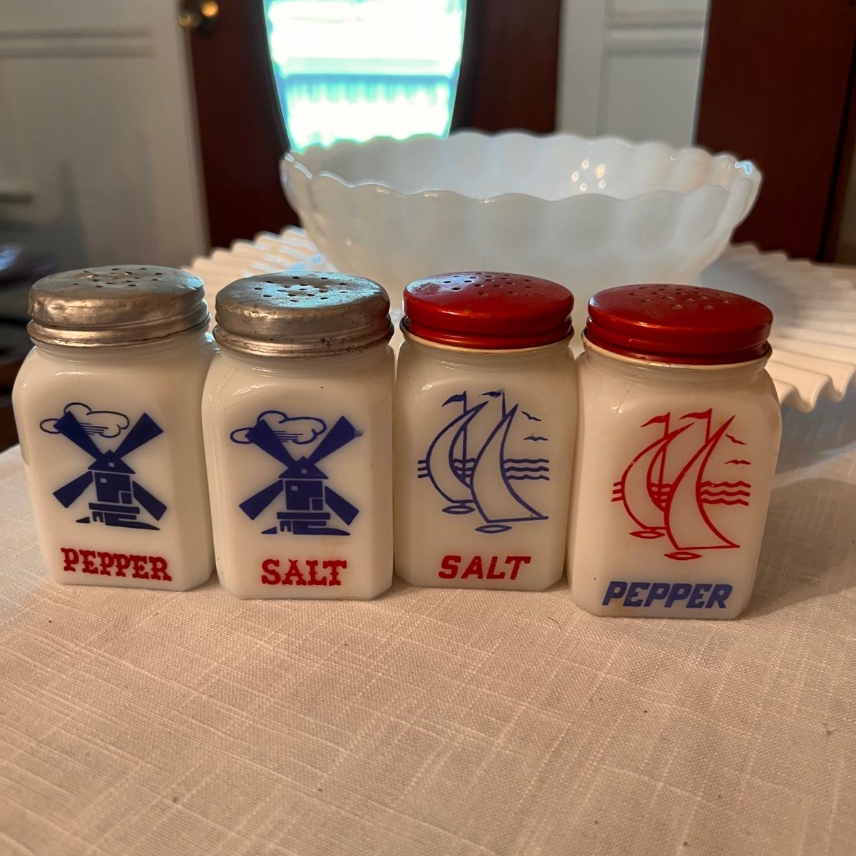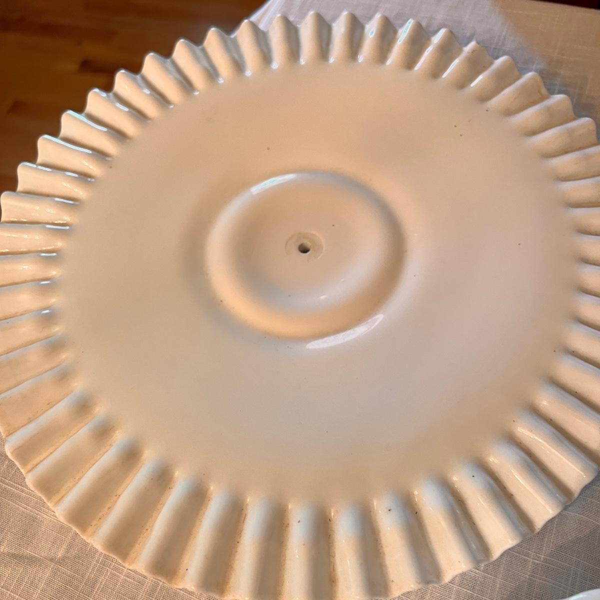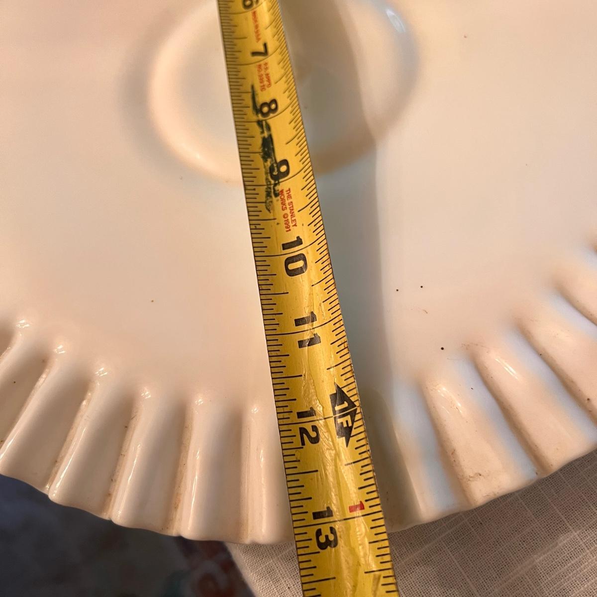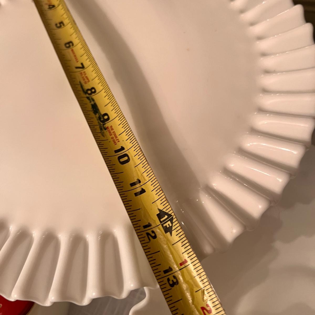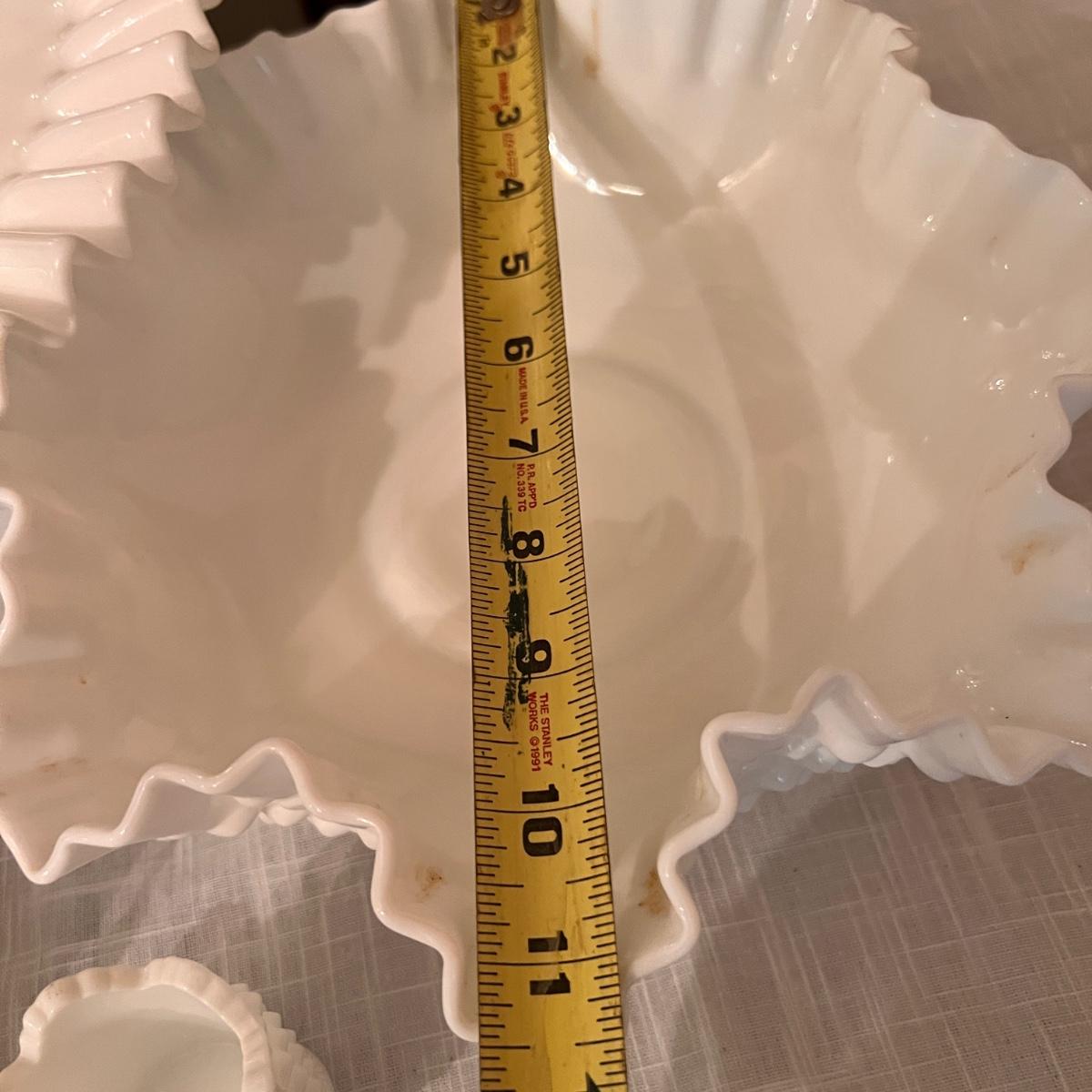 2 sets milk glass salt and pepper shakers, looks to be Fenton hobnail ruffle dish with matching 2 small budvases, looks to be Fenton ruffle cake stand, looks to be Fenton plate from a 2 tier cake stand, bowl and vase.