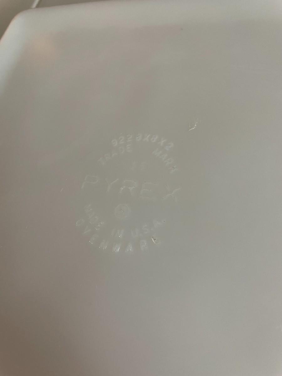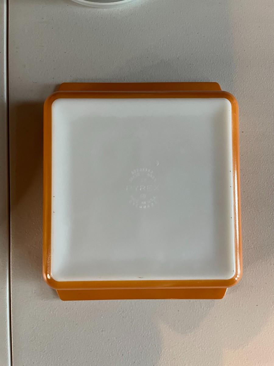 Yellow and Orange dishes are Pyrex. Square Orange Dish: 10L x 8 1/2W 2 1/2H.
