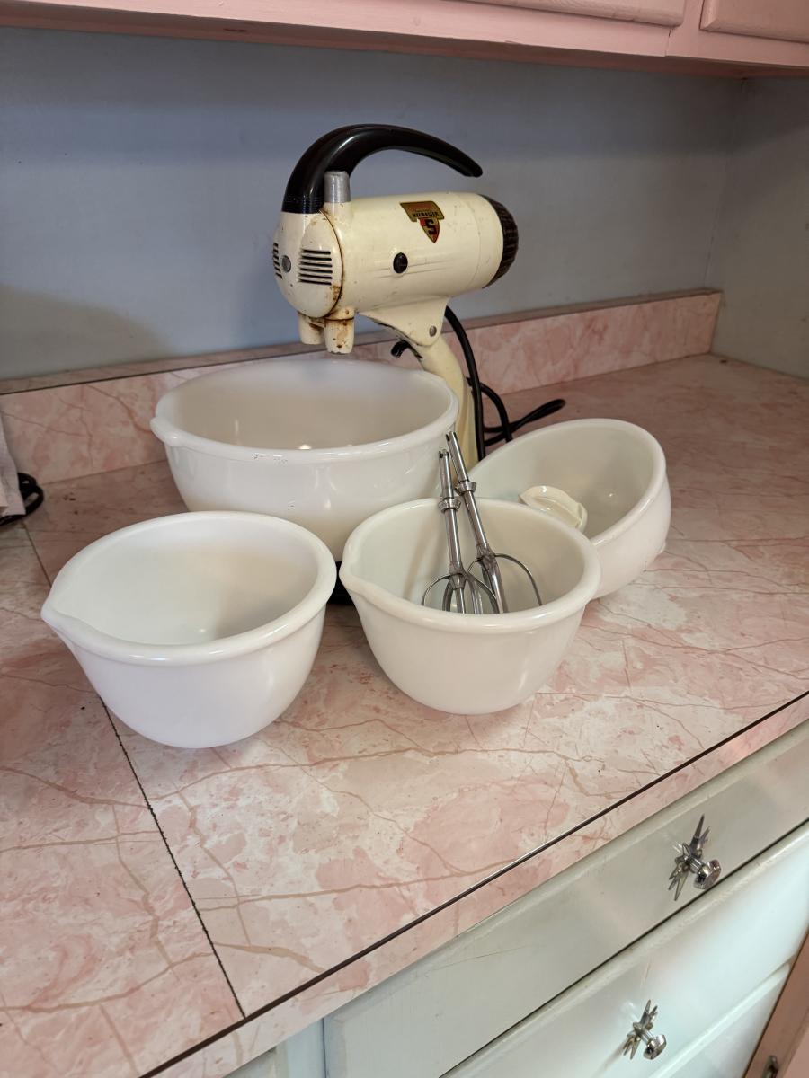 Vintage Mixmaster with 3 Bowls and Reamer, Working!