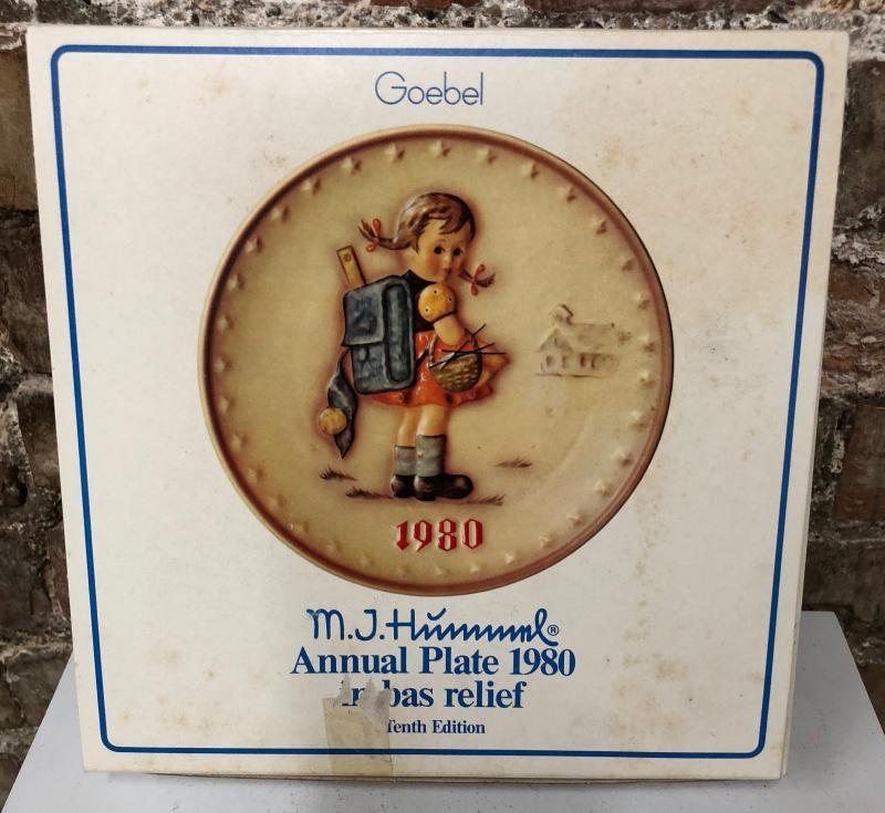 In bas relief here is the 1980 Annual Plate by M.J. Hummel by Goebel...with the box and COA...