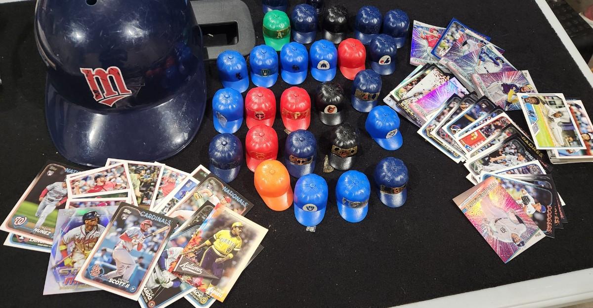 Vintage MLB Mini Plastic Batting Helmet Large Lot Rare & MN Twins Helmet plus Huge Topps Rookie Baseball Card lot
