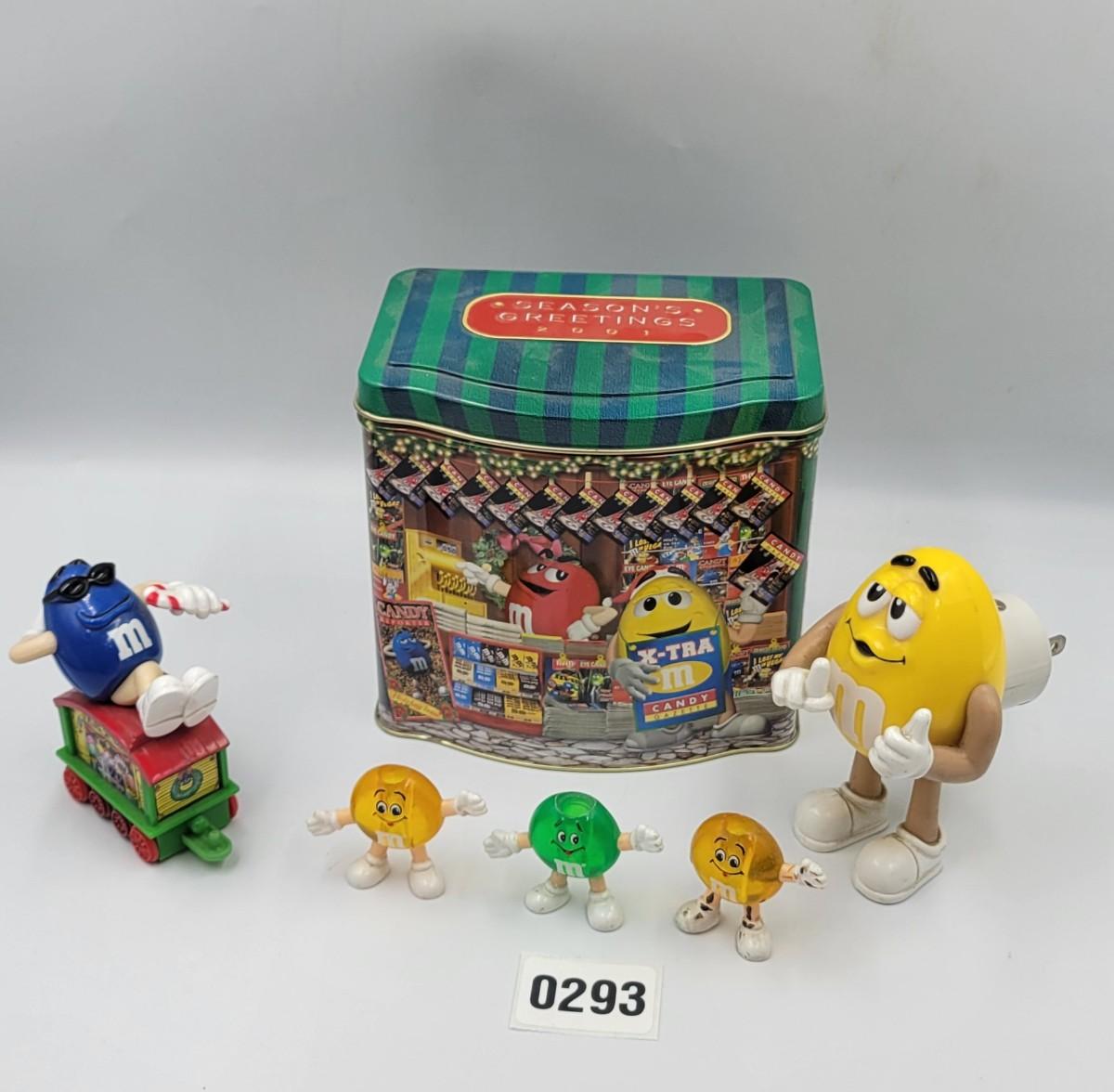 This lot comes with the items shown. the smaller M&M in the photo just above the "3" on our lot sticker is missing its right arm. Other than that, these items are in great condition. Night light works as well