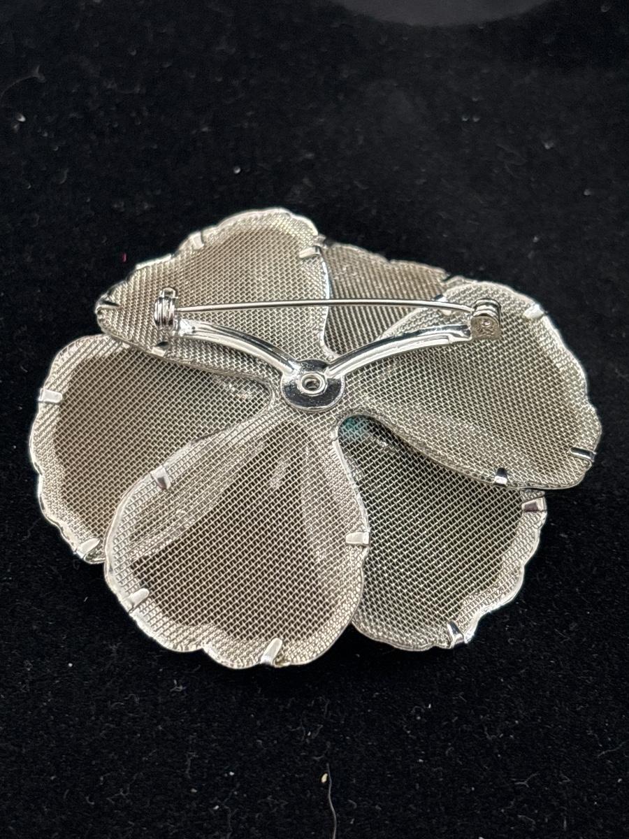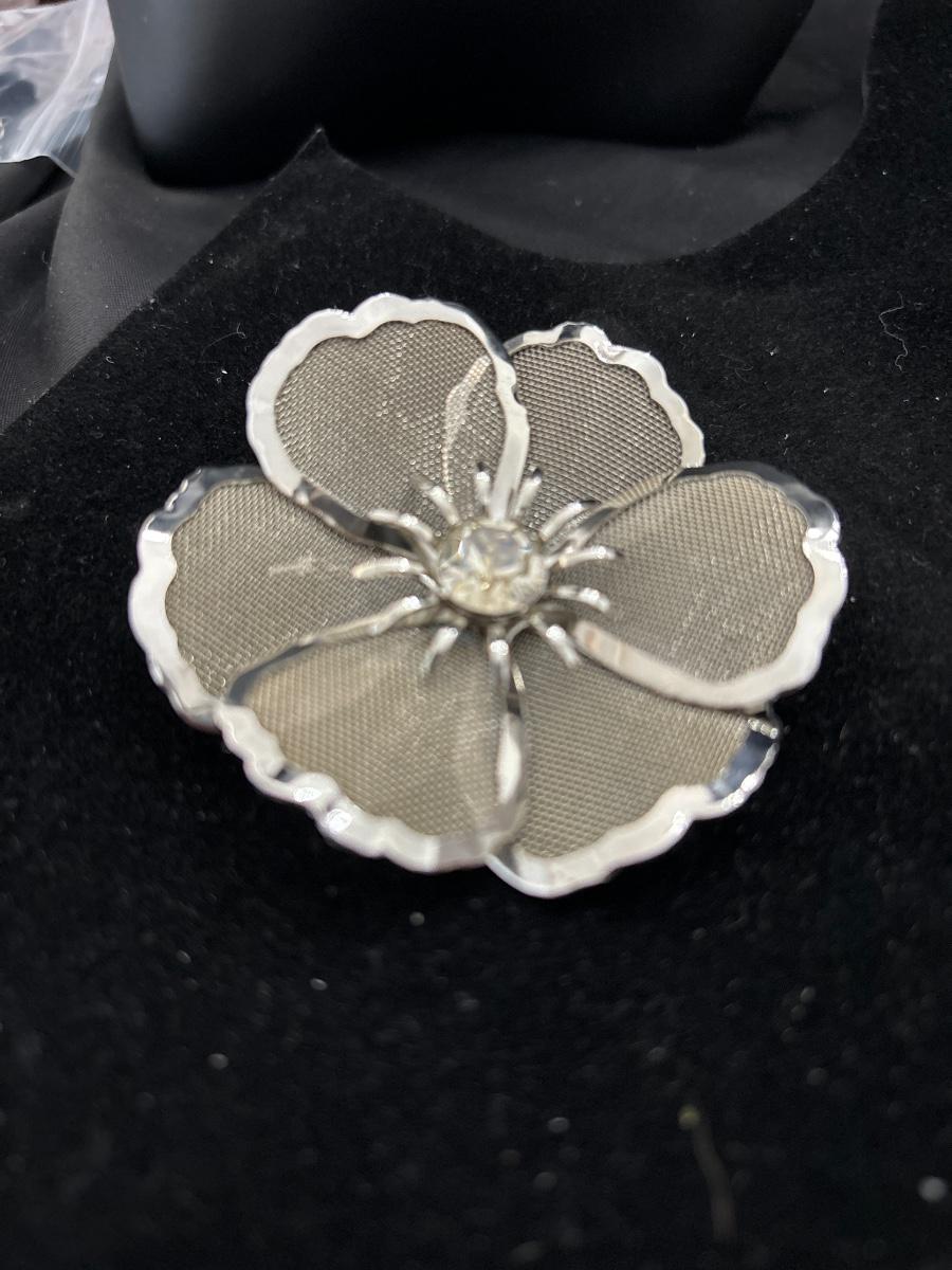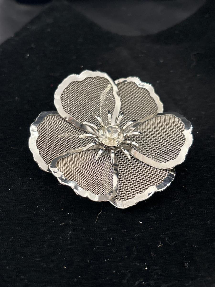 Vintage Modernist "B.E.D." Wire Mesh Flower Brooch, Pin ... Silver tone metal