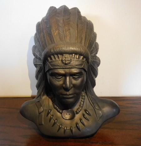 Vintage Molded Ceramics Native American Bronzed Tint Bust 8"x12" in good condition has great detailing and clean lines.