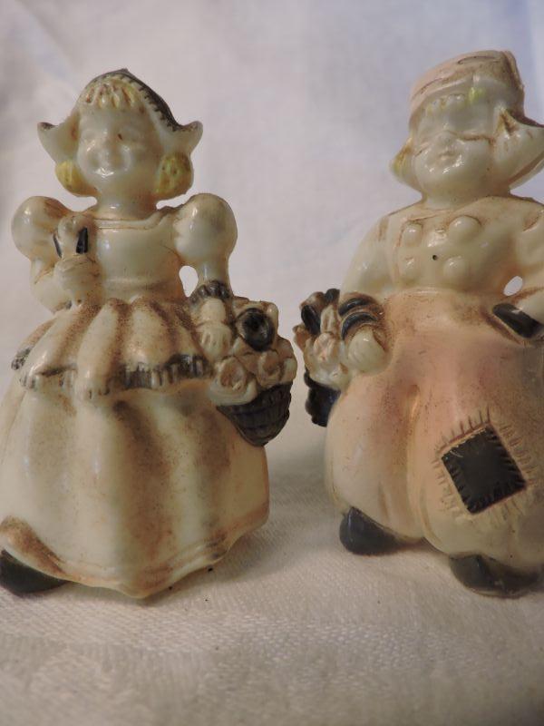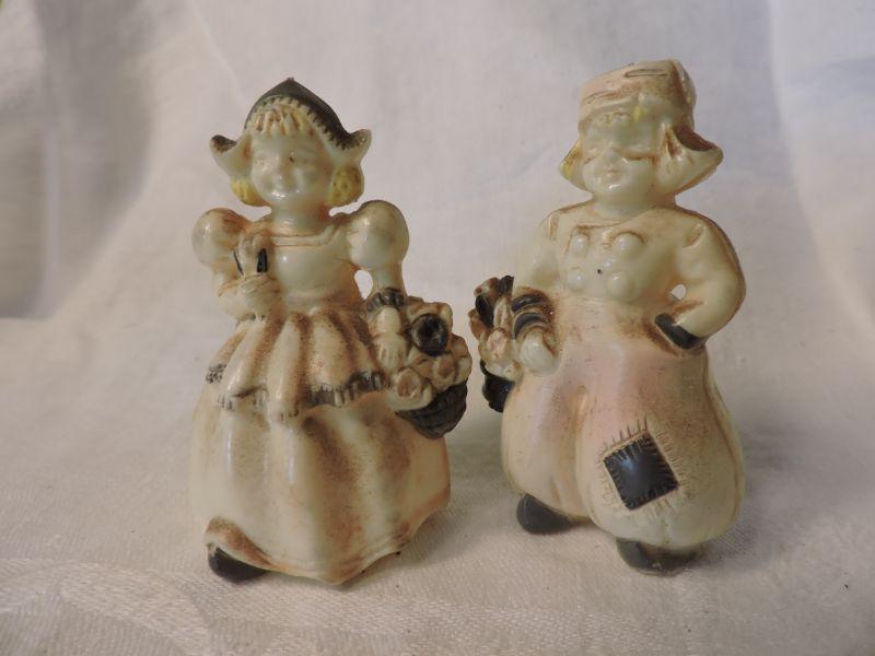 Vintage Molded Plastic Figurine Salt and Pepper Shakers.