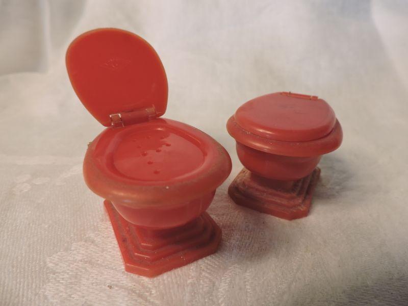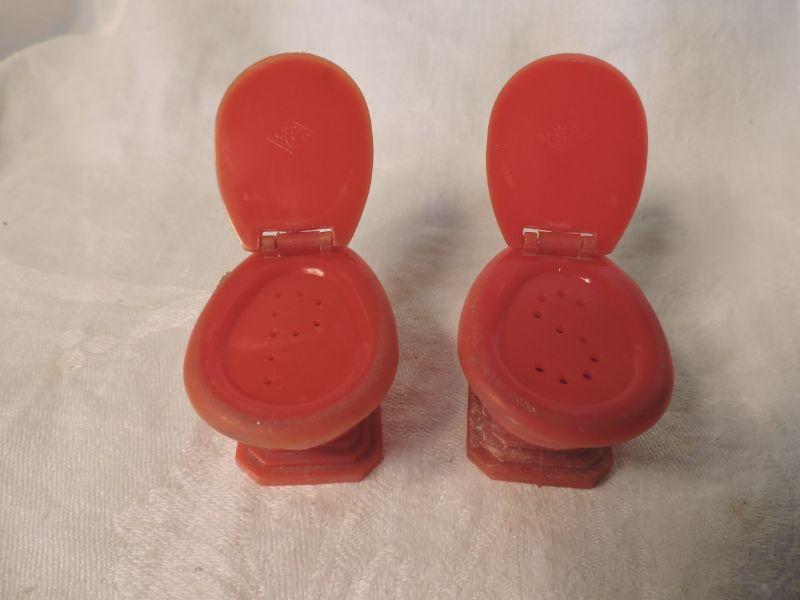 Vintage Molded Plastic Toilet Salt and Pepper Shakers.