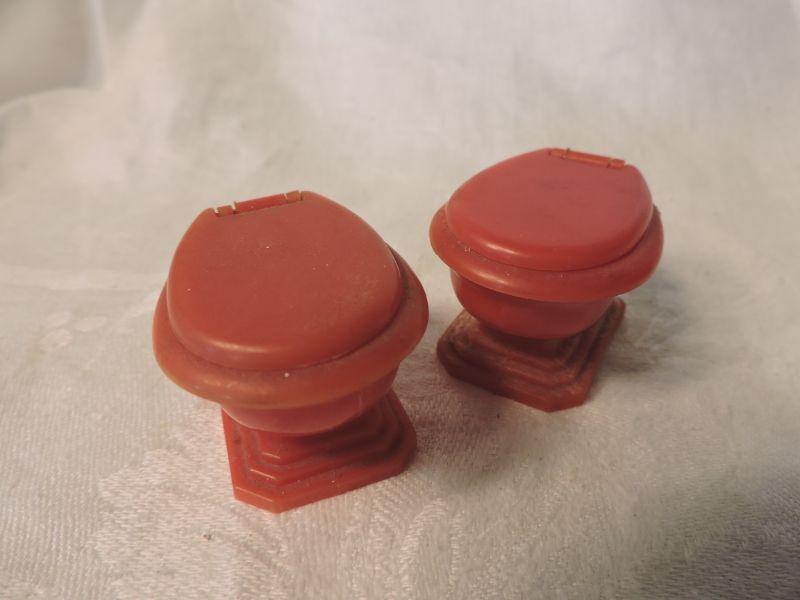 Vintage Molded Plastic Toilet Salt and Pepper Shakers. **Please read Terms and Conditions before placing a bid. Pick up is Wednesday, September 25 from 4pm to 7pm and Saturday, September 28 from 9am to 1pm in Williamstown, NJ. All sales are final. All sales are as is, where is. Please review all photos. Any props included in photos are not included in listing. All measurements are approximate.