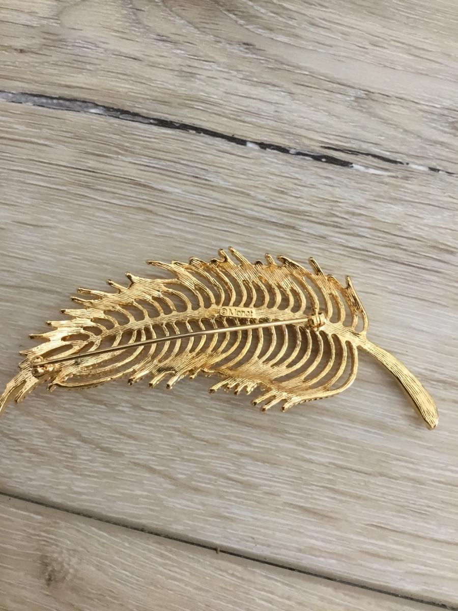 Vintage Monet feather, gold tone brooch