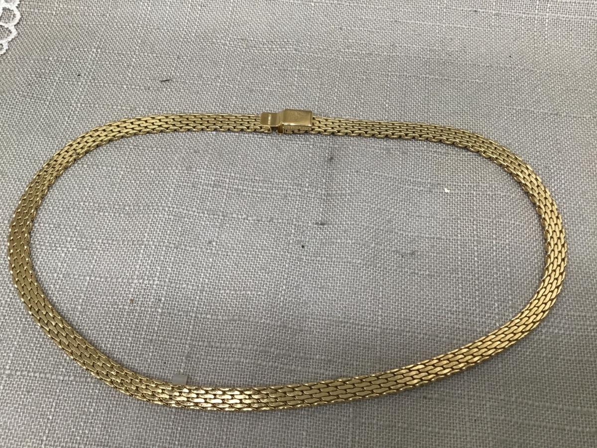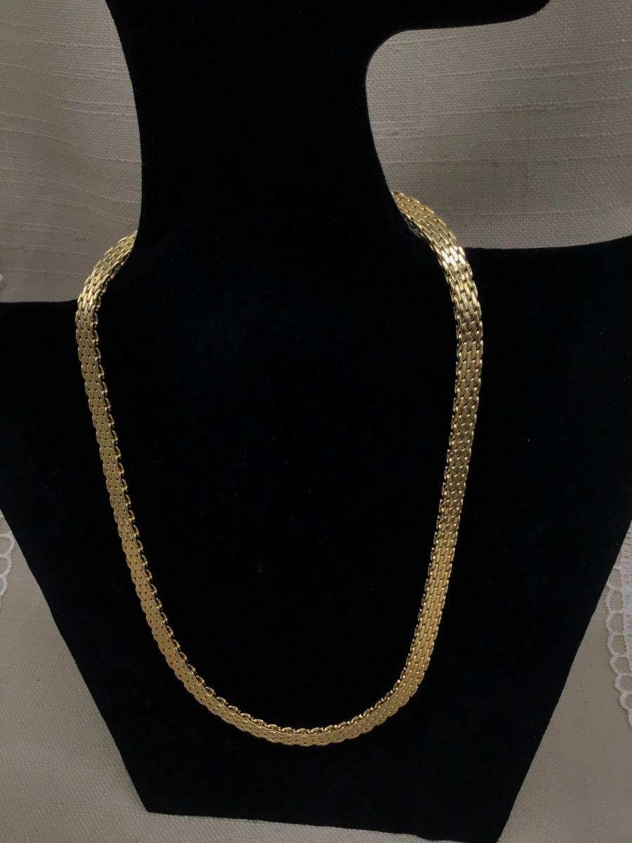 Vintage Monet Flat Serpentine Chain Necklace- Short Gold-tone Collar Necklace