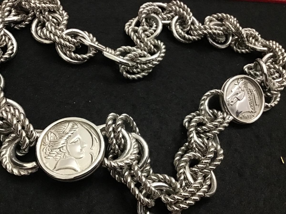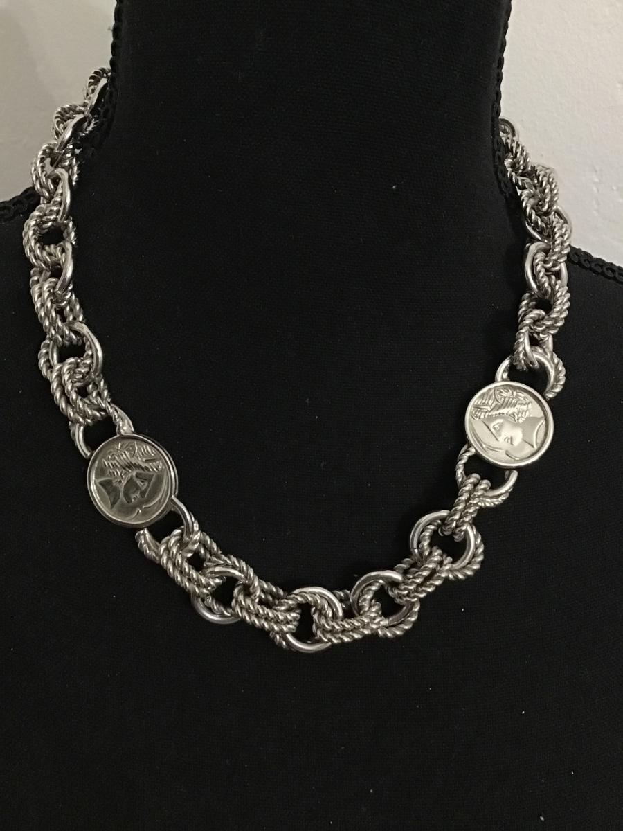 Vintage Monet Reversible Roman Coin Rope link Necklace