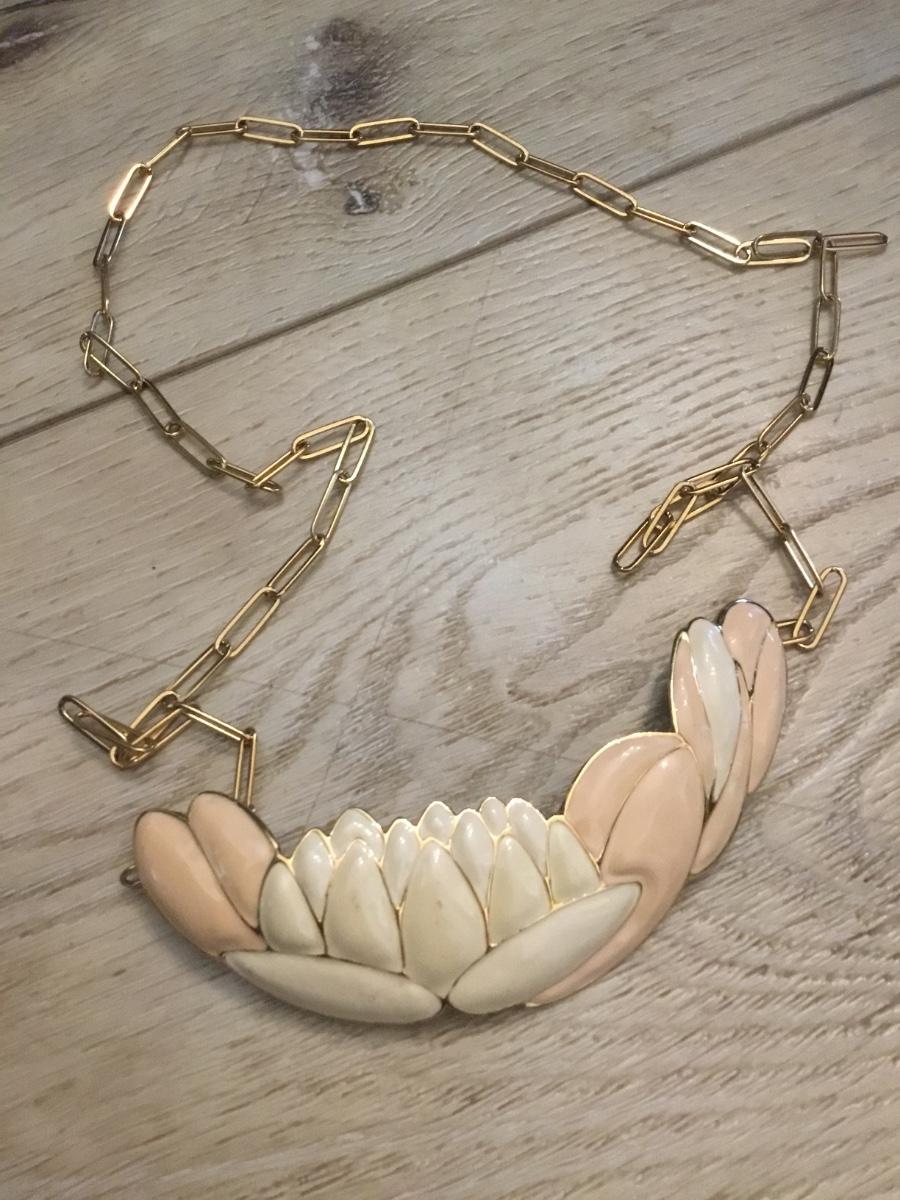 Vintage Monet water, lilies, peaches and cream, enamel statement necklace