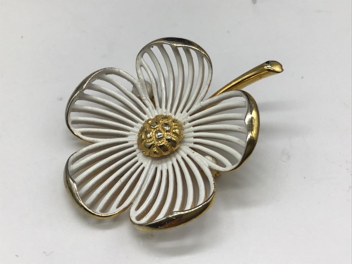 Vintage Monet White Flower Brooch