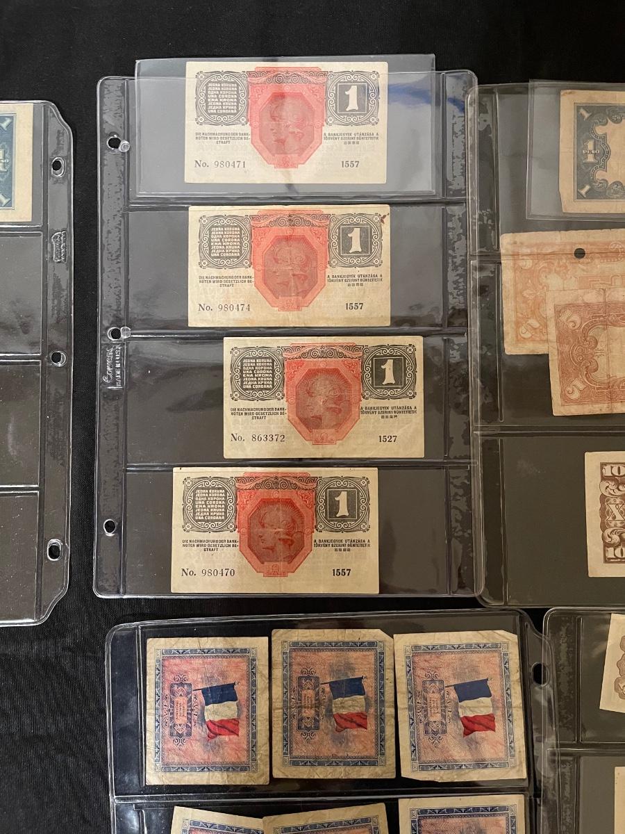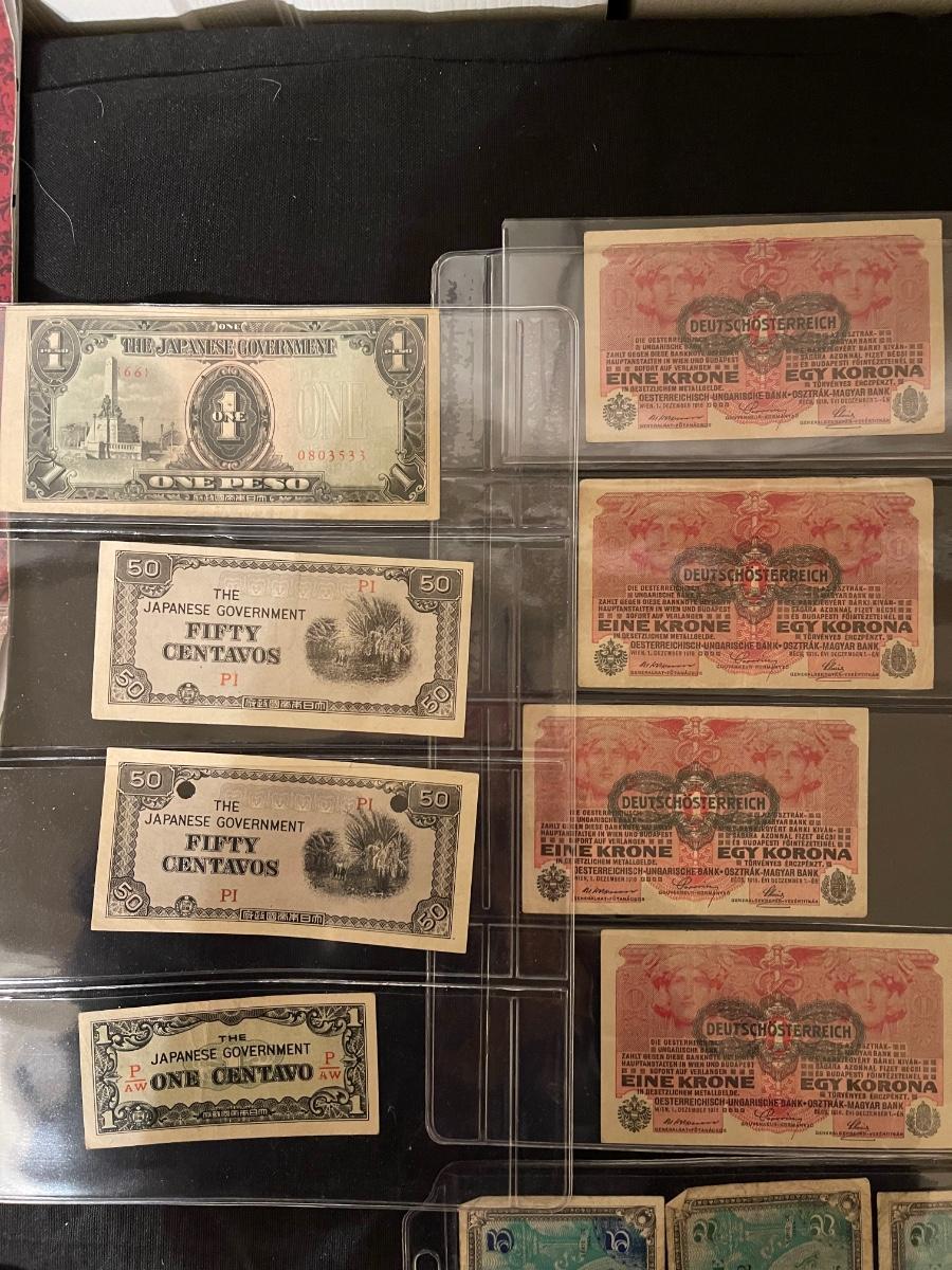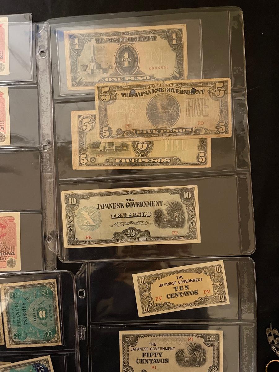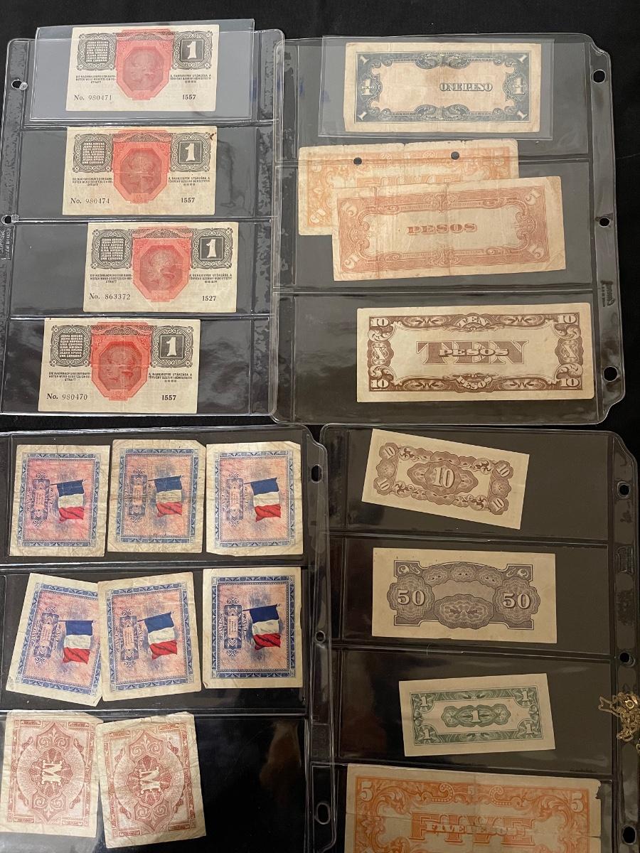 (5) pages of vintage money - Japanese, French, etc. (25) total