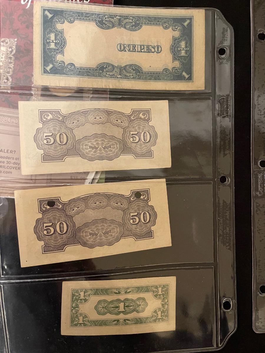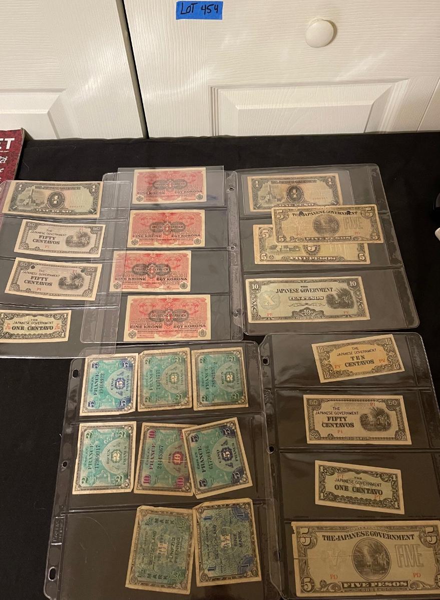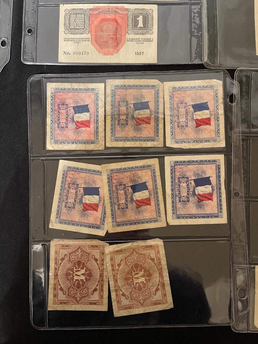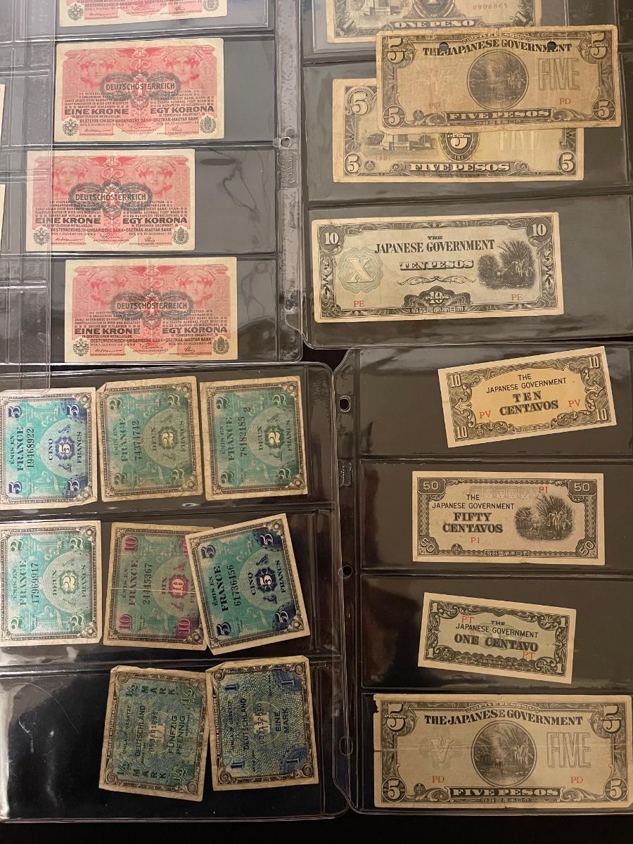 (5) pages of vintage money - Japanese, French, etc. (25) total