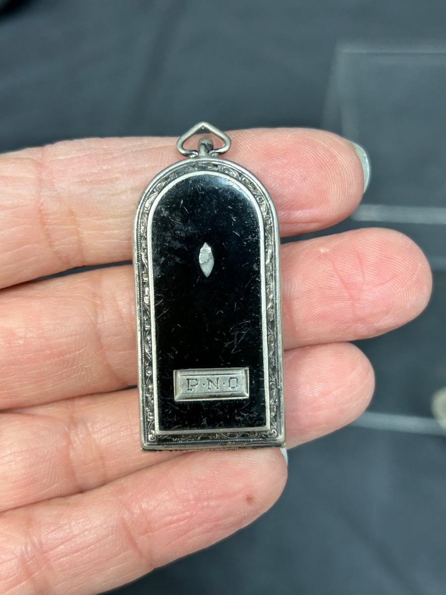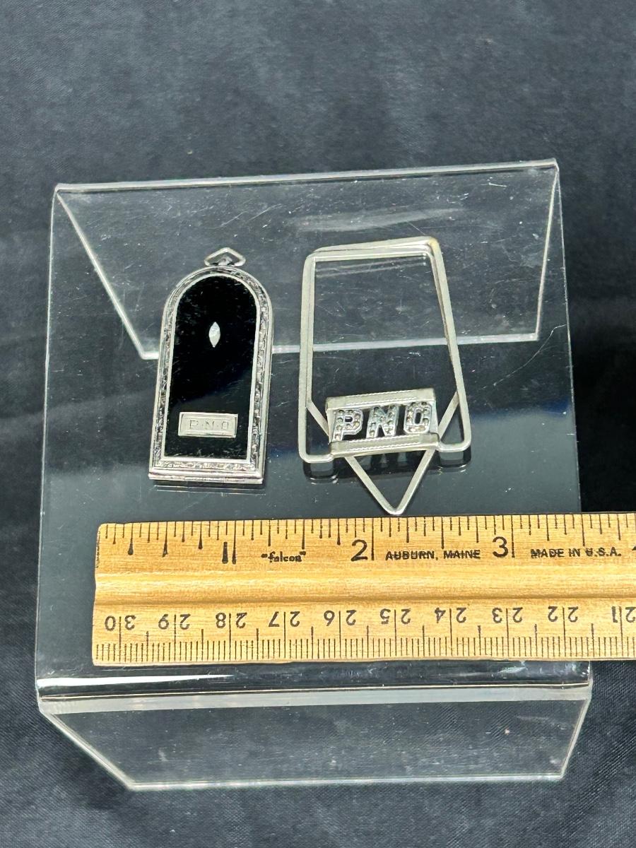 Vintage Monogrammed Jewelry SWANK Money Clip Marathon Sterling Silver Locket Stamp Holder. In good condition. The locket is a stamp cars holder, found variations online for similar ones belonging to Elks and Moose Lodge members. Money clip is only marked Swank.